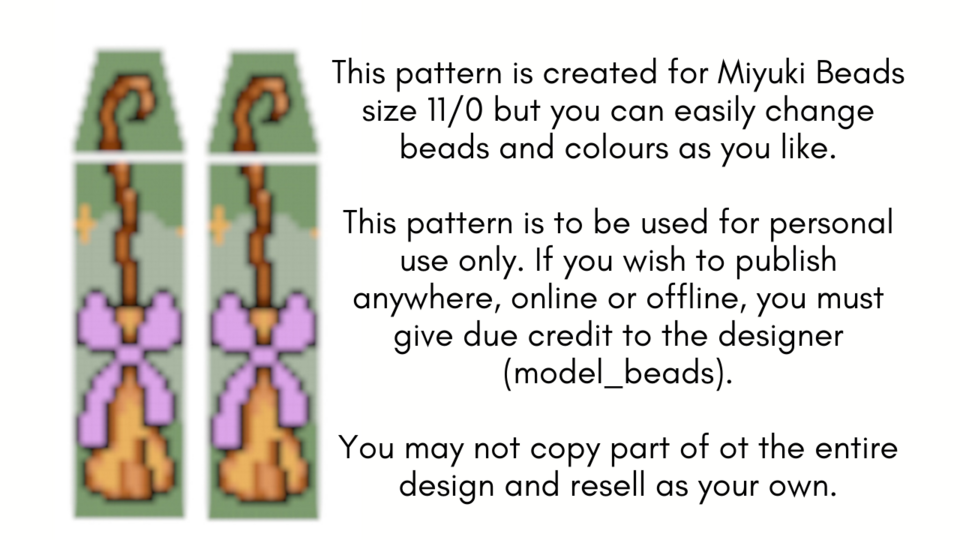 This pattern is created for Miyuki Delica seed beads size 11, but you can chop and change colors and beads as you please)