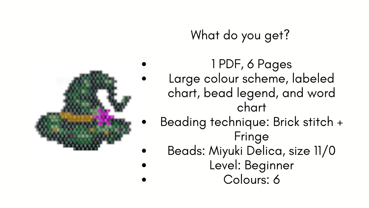 Our pattern captures the whimsy of a classic witch's hat, complete with intricate beadwork that sparkles like the midnight sky. These earrings are designed to be the ultimate symbol of witchy style.
