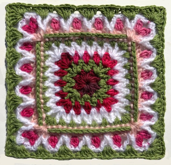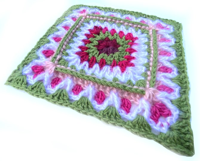 Grannymuster Wiesngranny ein tolles Grannymuster, Du kannst es so wie hier mit einem häufigem Farbwechsel häkeln und musst trotzdem nur wenige Fäden vernähen.... Natürlich kann man aus dem Wiesngranny auch Kleidung, Kissen, Decken usw...machen..alles was halt so aus Grannys geht!