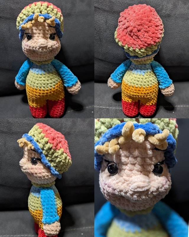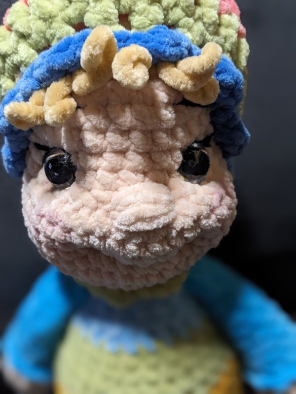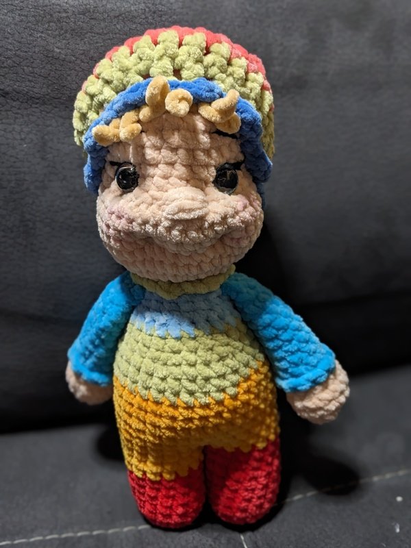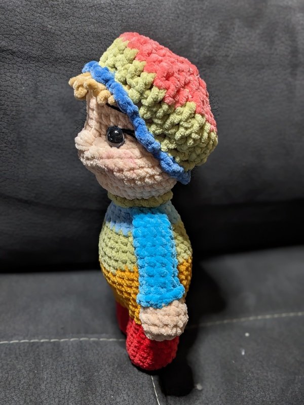 Mit deiner Häkelnadel in Stärke 4,0 und der in der Anleitung angegebenen Wolle - Chenille 100 g /120 m - wird Zwergi ca. 27 cm groß.