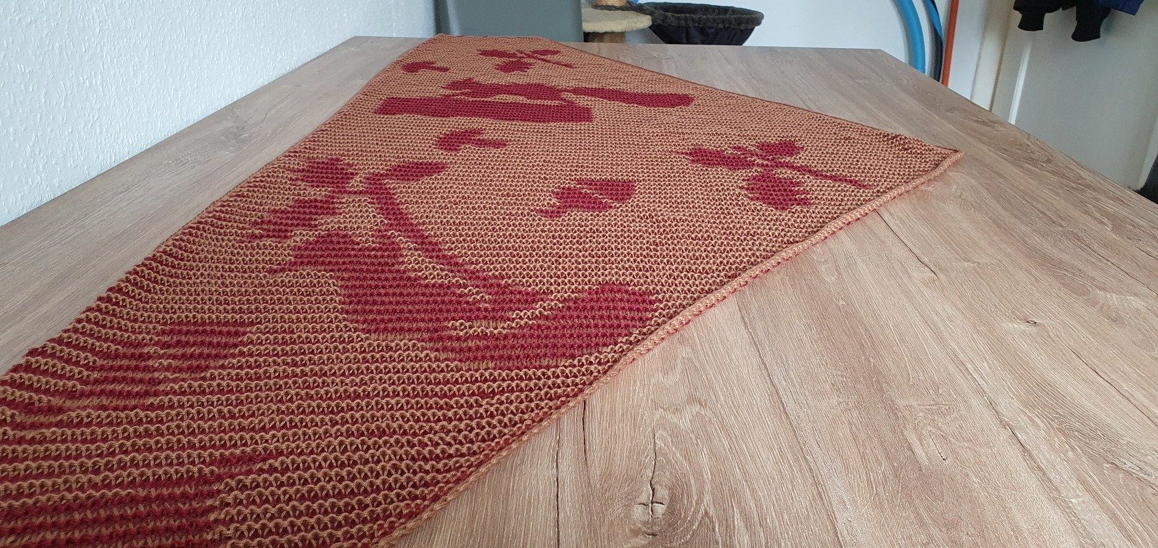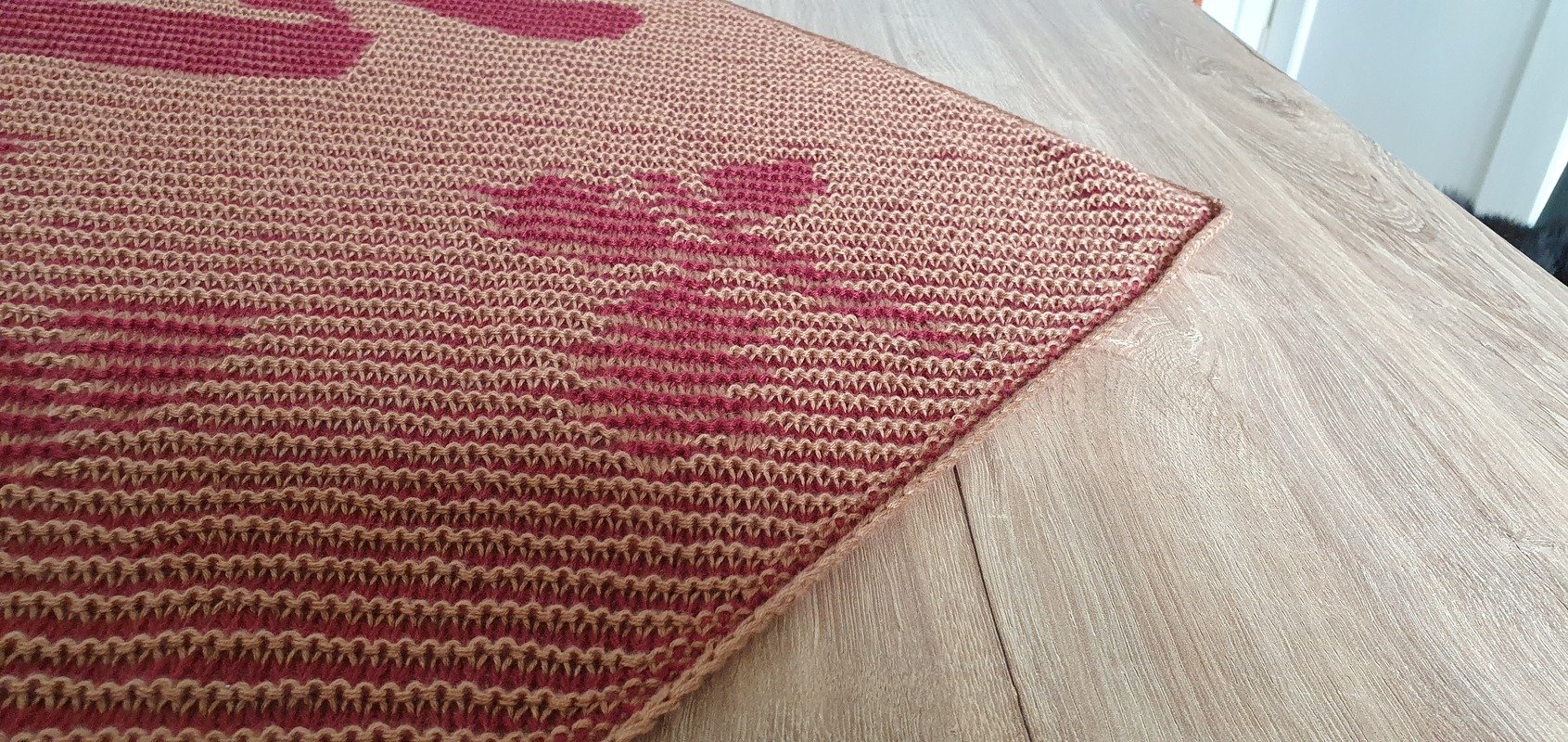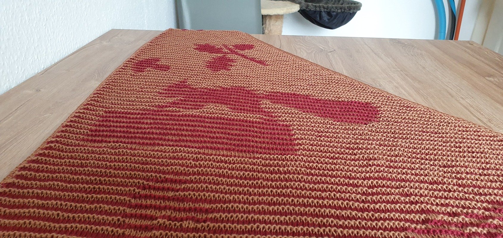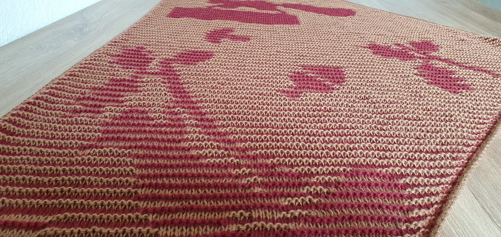 This pattern guides you step by step through creating a unique motif shawl, using the technique of shadow or illusion knitting. With this special method, the motif only becomes visible when viewed from the side – a striking effect with real wow-factor!