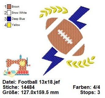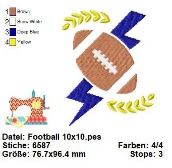 Ob auf Kleidung, Taschen oder Heimtextilien, diese Stickdatei verleiht jedem Artikel einen sportlichen und modernen Touch. Ein perfektes Design für alle, die ihre Leidenschaft für den Football zum Ausdruck bringen möchten.