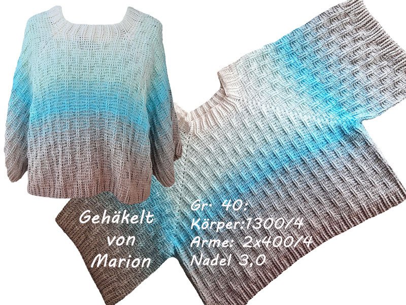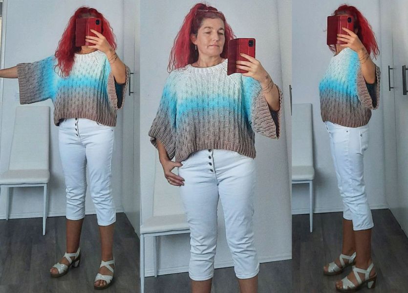 Oversize - weil die Arme locker und weit gehäkelt werden können.