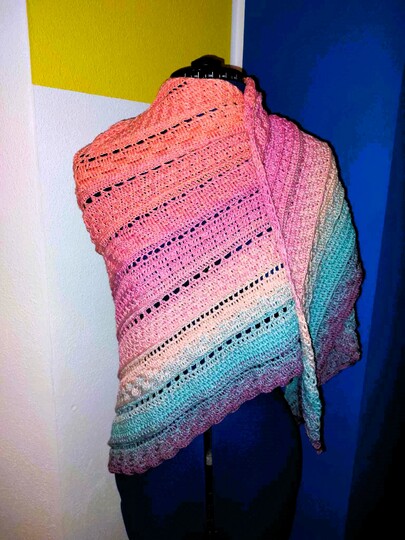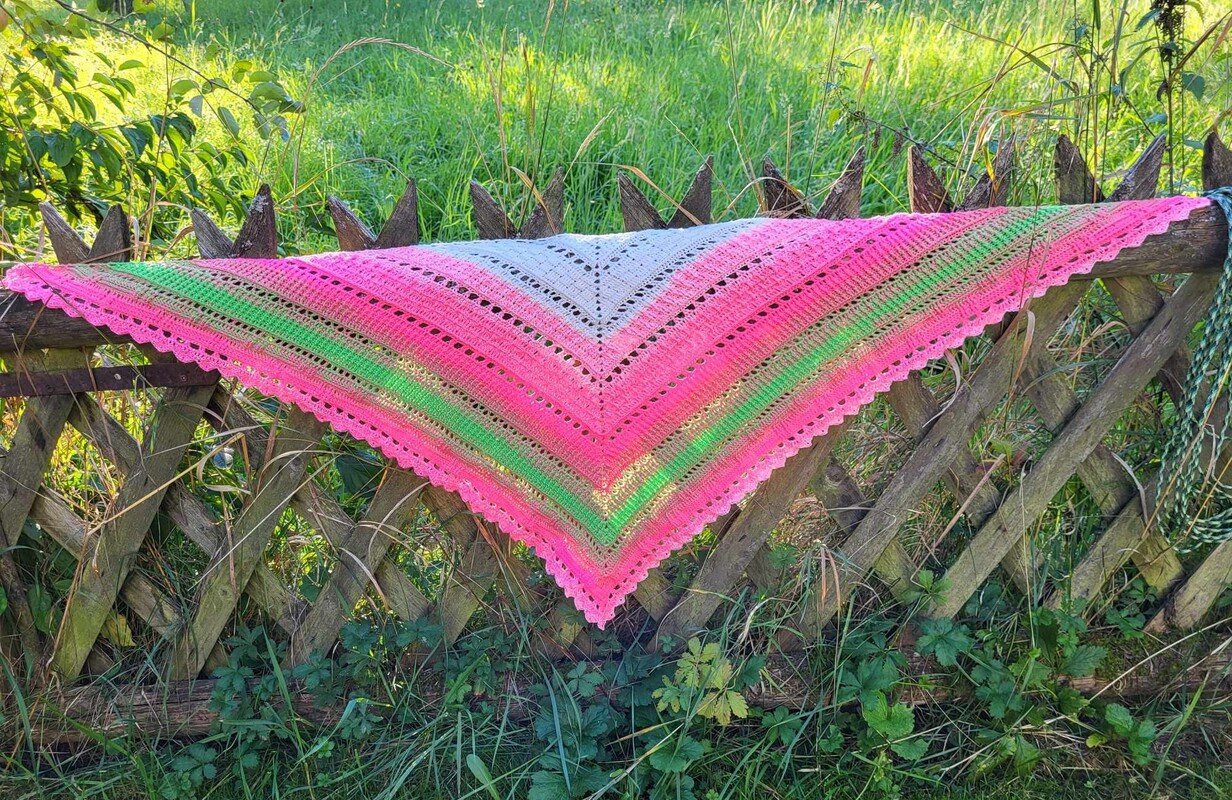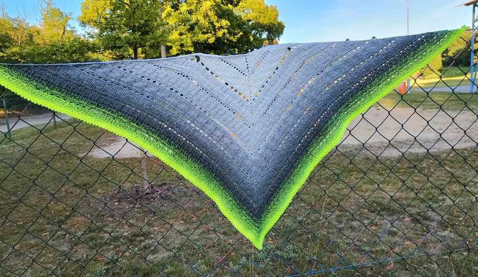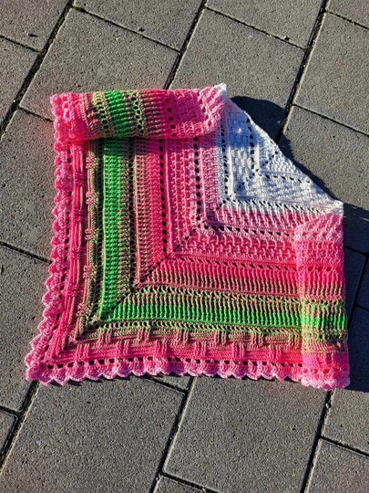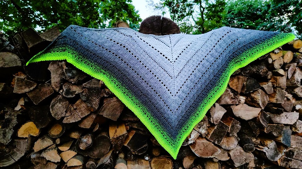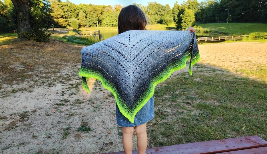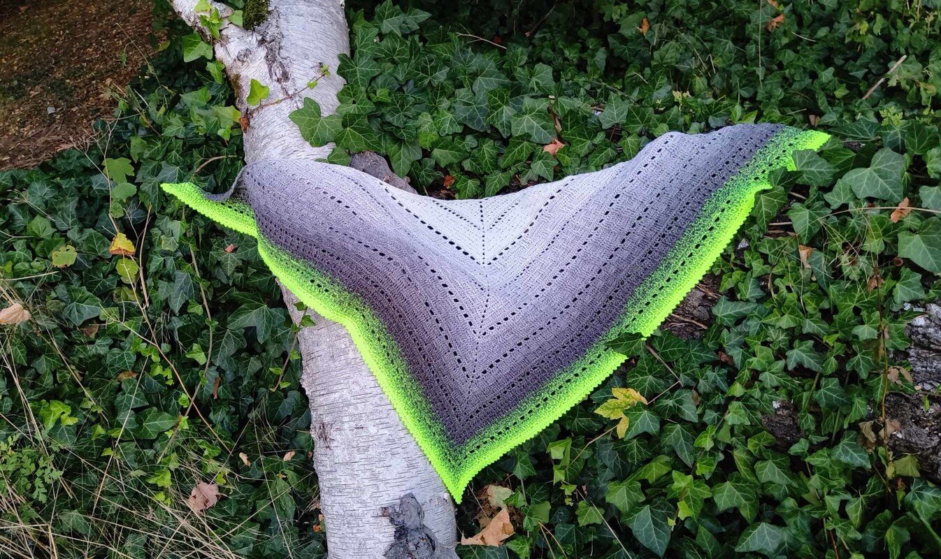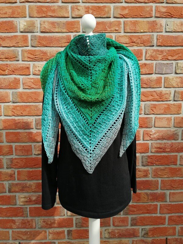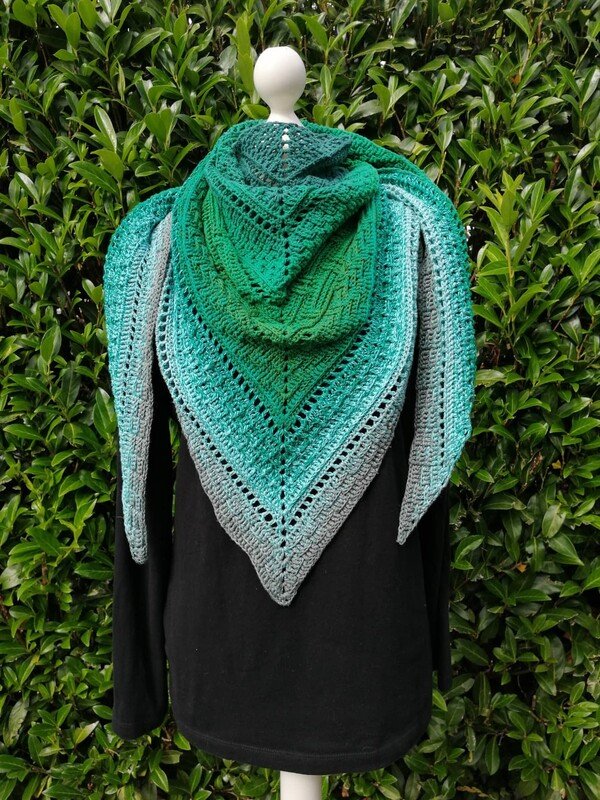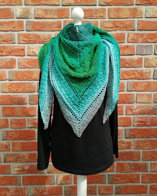 With the crochet pattern for the triangular scarf "Nyx" you can crochet your individual scarf, and include your name or a personal message: