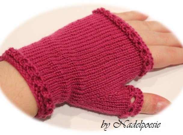 These wristwarmers are intentional short, so you don’t sweat on your arms under the jacket. A fine lace-pattern decorates the hems.