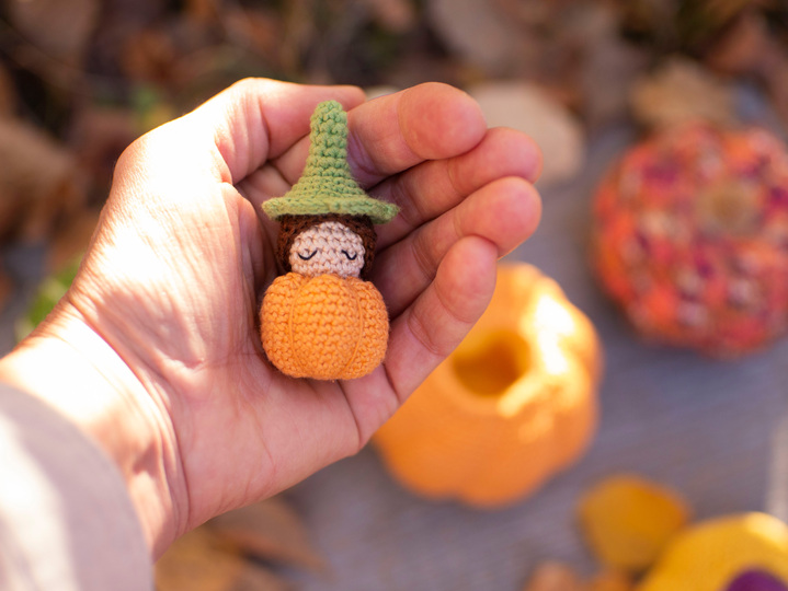The DIMENSION of finished pumpkin is 8 cm/ 3,2 in in diameter and baby 7 cm/ 2,75 in tall.