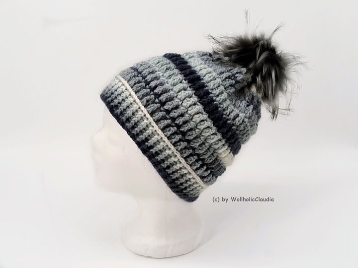 Mütze: Beispiel hier: KU = 60 cm, Mützenhöhe = ca. 20 cm.