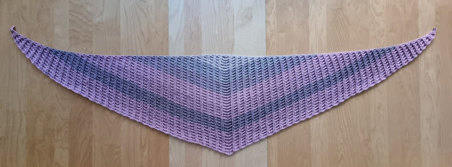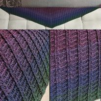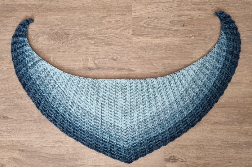 It is a flat shawl with a very interesting structure thanks to the mix of FPdc, BPdc and dc. The first rows are a little bit tricky, but when the pattern is visible, it gets easier.