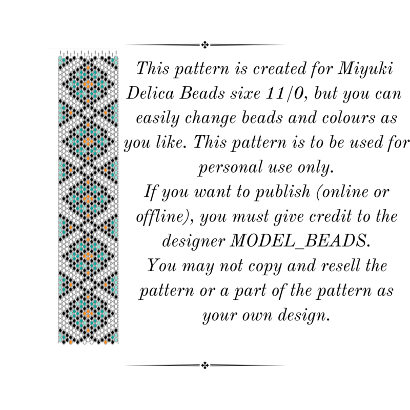 This pattern is created for Miyuki Delica seed beads size 11, but you can change colors and beads as you please.