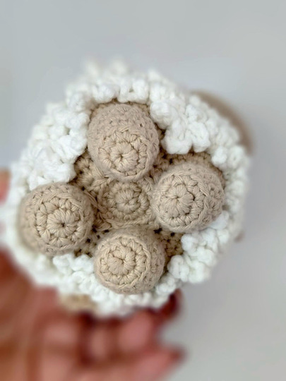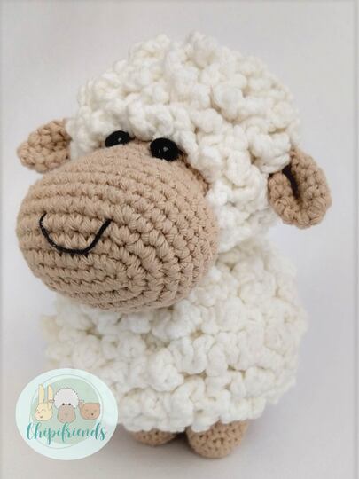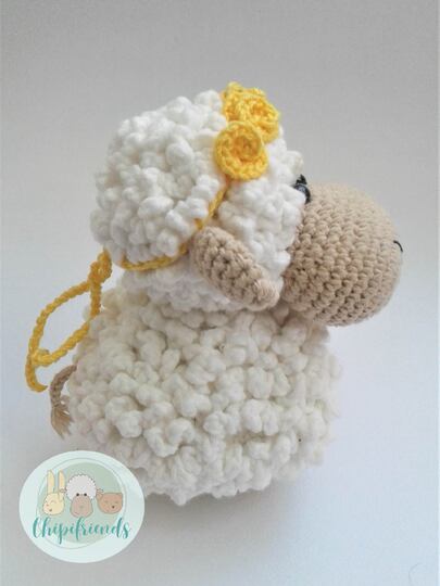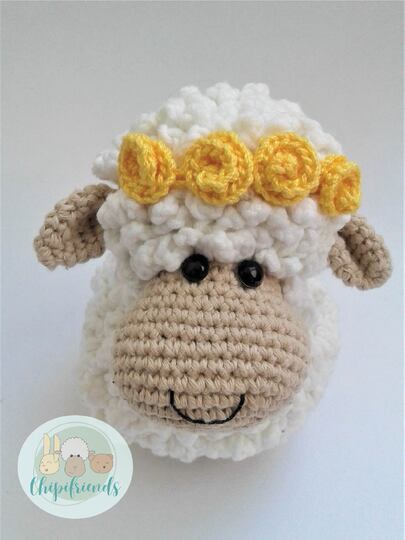 With this pattern you will learn how to crochet Oli, a cute happy sheep with flowers on her head.