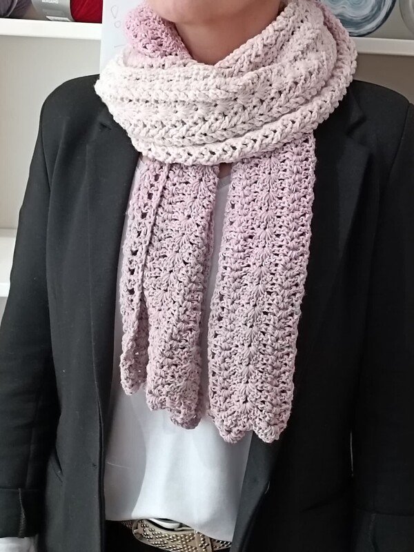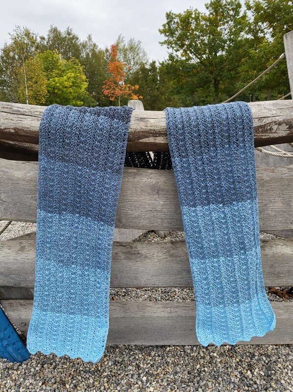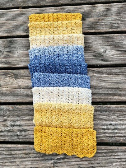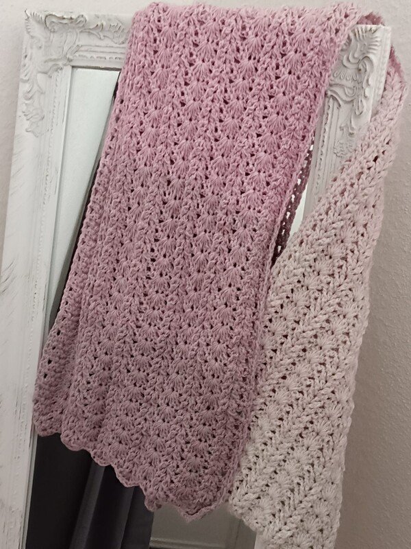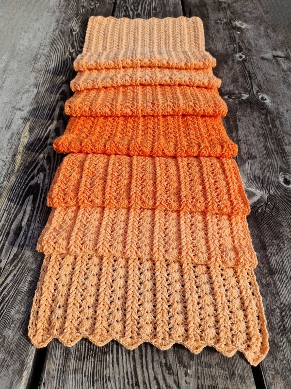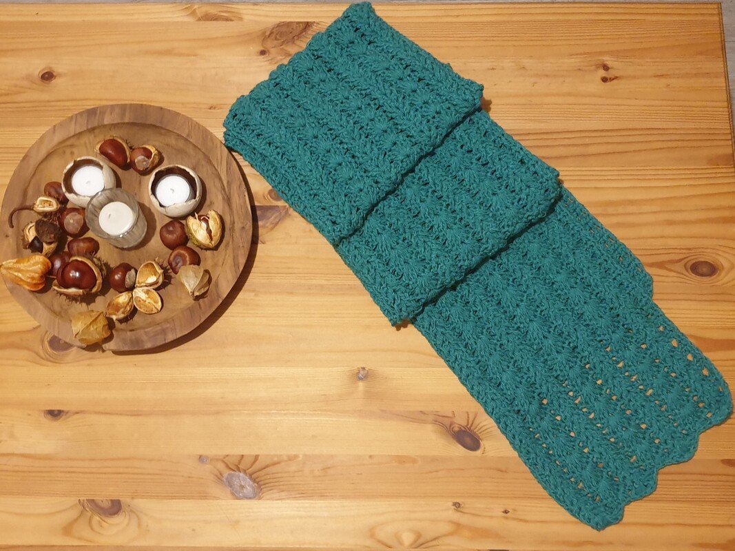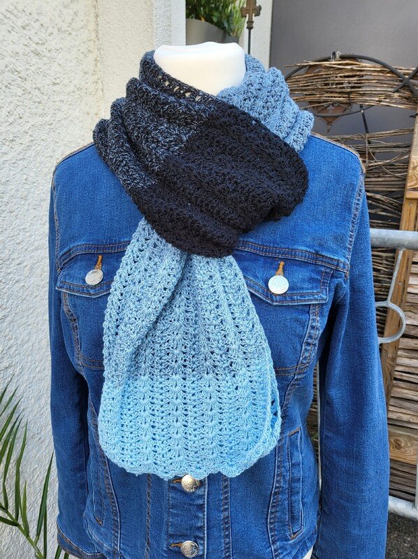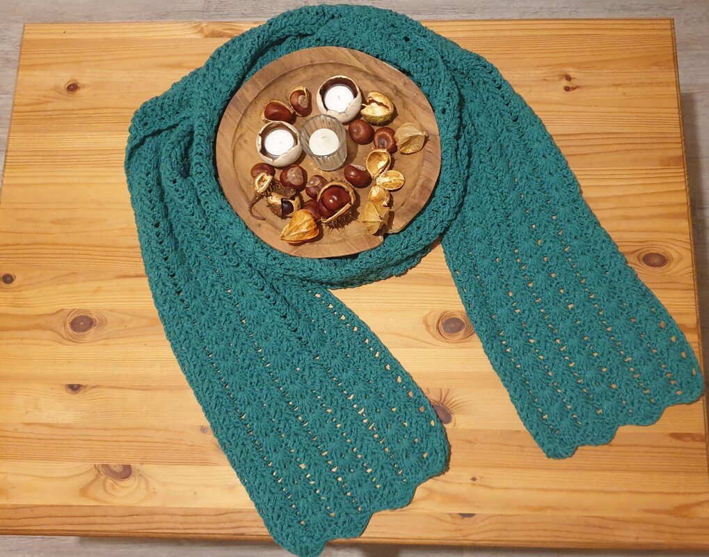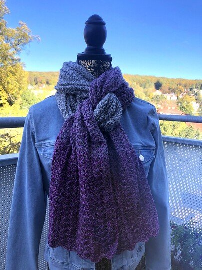 Der Schal kann in beliebiger Größe gearbeitet werden. Eine übersichtliche Tabelle mit Richtwerten zu den Schals der Testhäkelgruppe ist in der Anleitung enthalten.