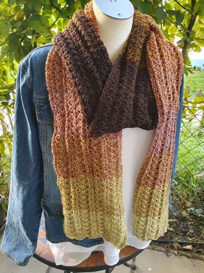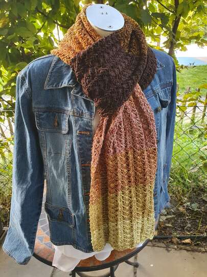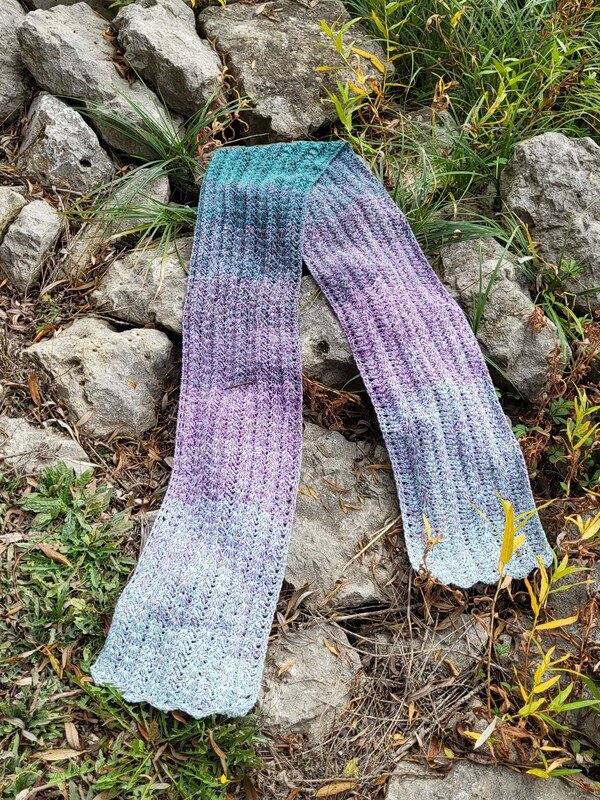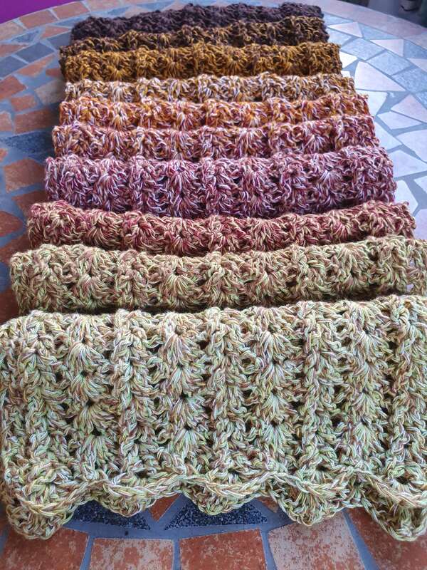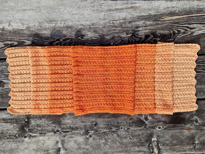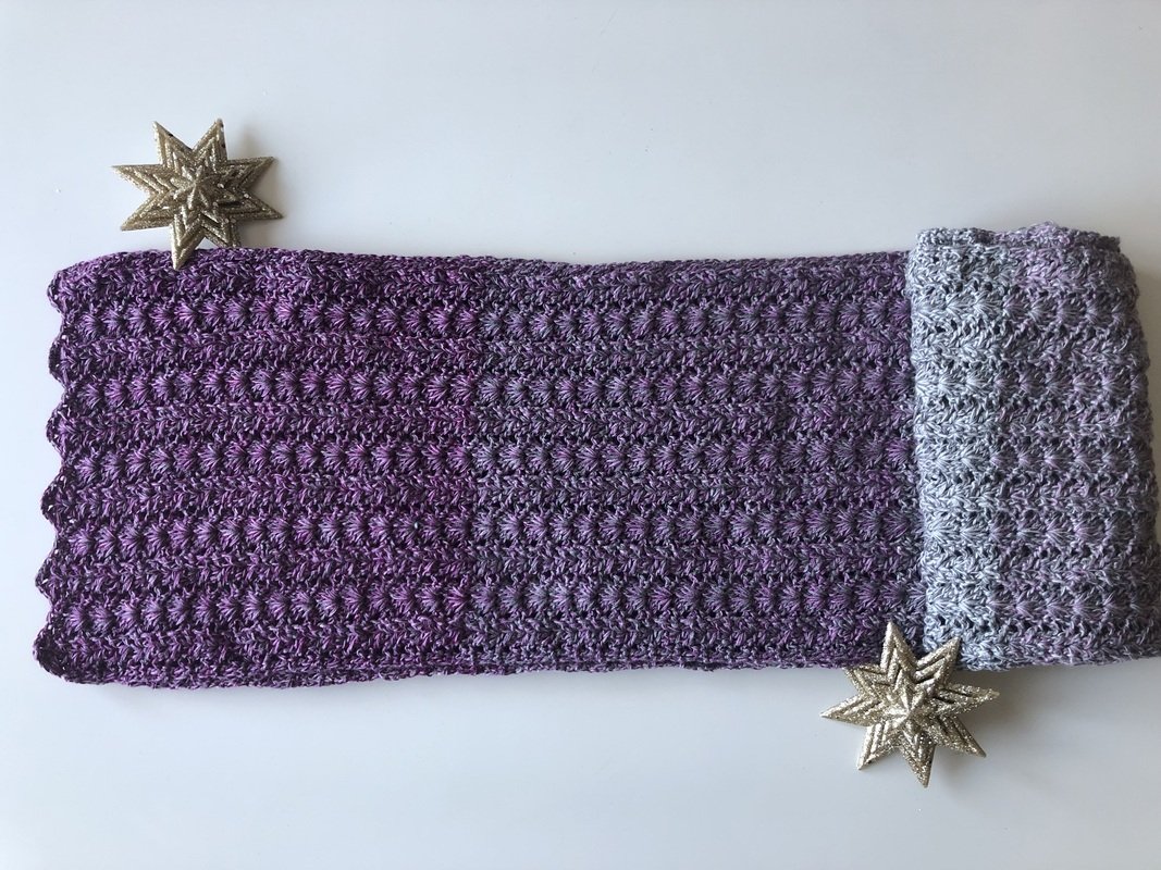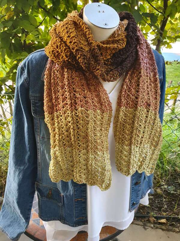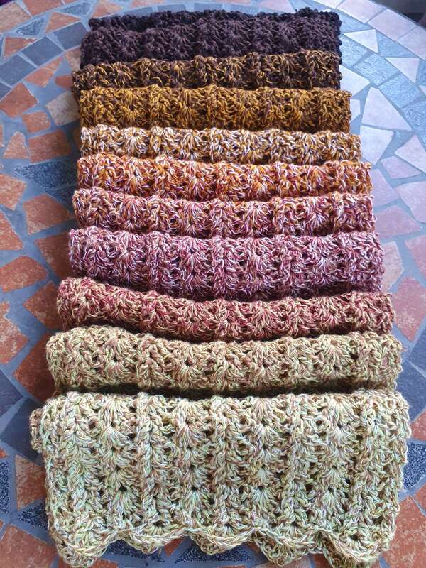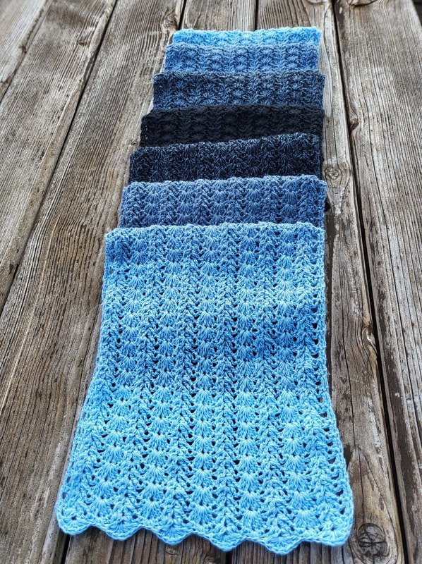 Der Schal kann in beliebiger Größe gearbeitet werden. Eine übersichtliche Tabelle mit Richtwerten zu den Schals der Testhäkelgruppe ist in der Anleitung enthalten.