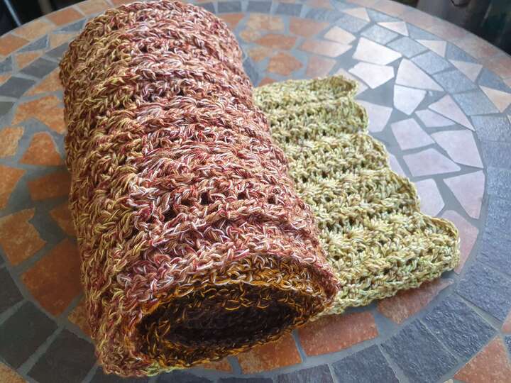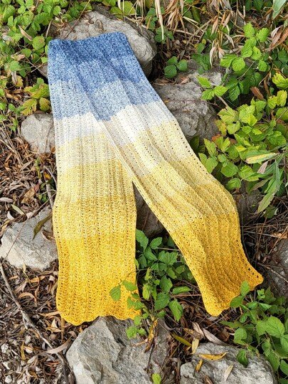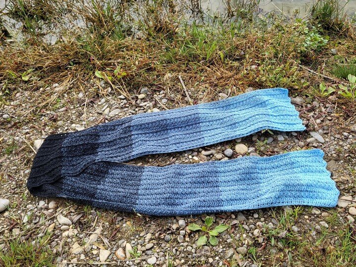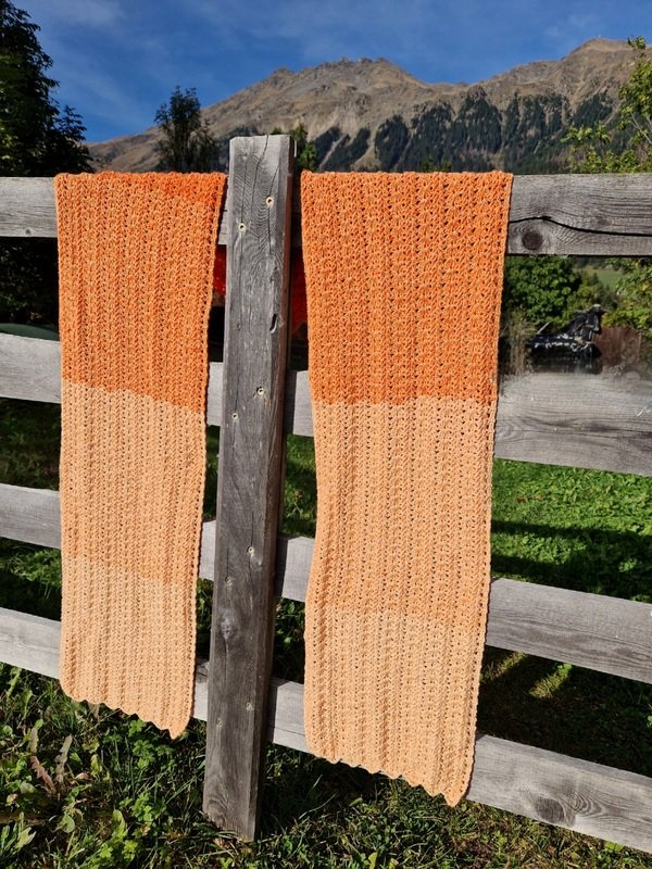 Du kannst Crazy Winter mit beliebigem Garn häkeln. Die benötigte Garnmenge ist abhängig von der gewünschten Länge und Breite des Schals, dem gewählten Material und deinem persönlichen Häkelstil. Bei Farbverlaufsgarn (Bobbeln) empfehle ich eine Lauflänge ab 1000 m, 4-fädig.