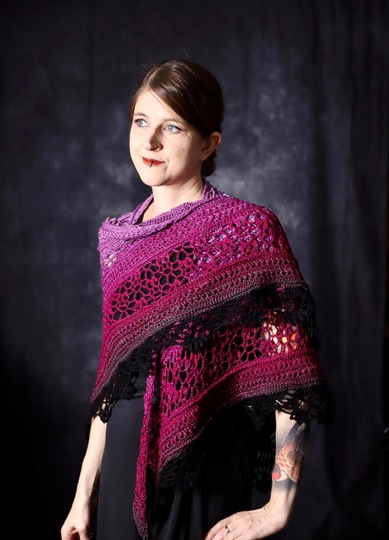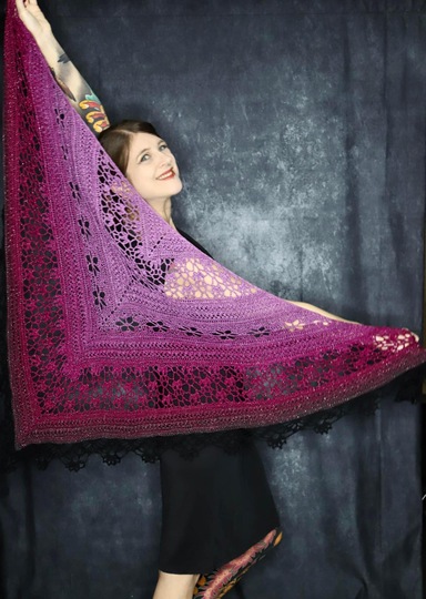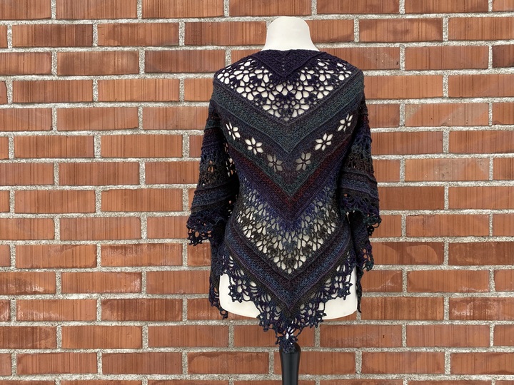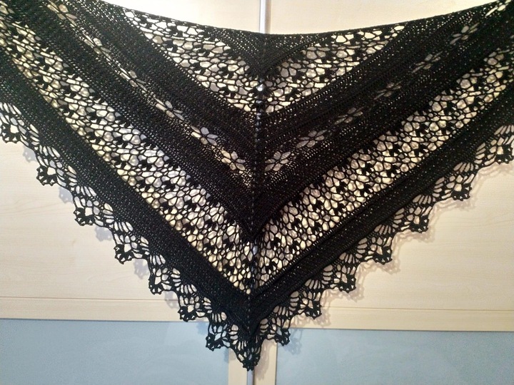 For the shawl in the example, 50 rows were crocheted + 5 rows for the border.
