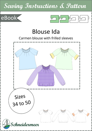 To ensure a beautiful drape for the blouse, it is recommended to choose soft fabrics like viscose woven fabric or crêpe georgette. "Ida" is also excellent as a lightweight sheer blouse that you can wear over a top in the summer or as a beach blouse for your vacation.