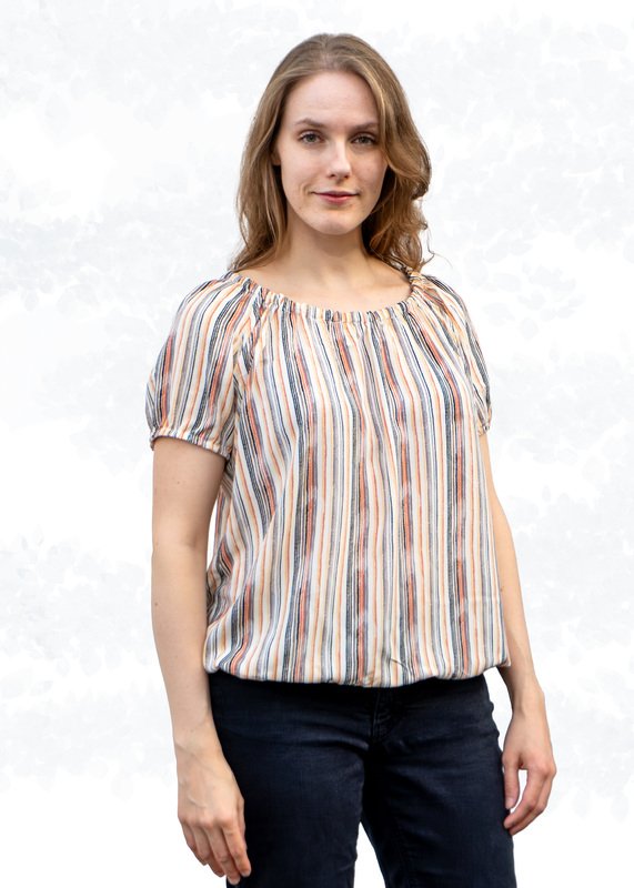 Discover the beautiful "Ida" model - a loose-fitting Carmen blouse made from woven fabric that effortlessly elevates your look with style and ease. With its gathered neckline, this blouse offers versatile wearing options: you can either wear it classic over the shoulders or style it casually off-shoulder. The elastic at the neckline allows you to adjust the width of the neckline to your liking.
