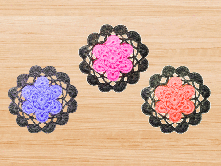 Crochet Round Coaster Pattern includes pictures for every step, gauge, stitch count and extra notes to help explain.