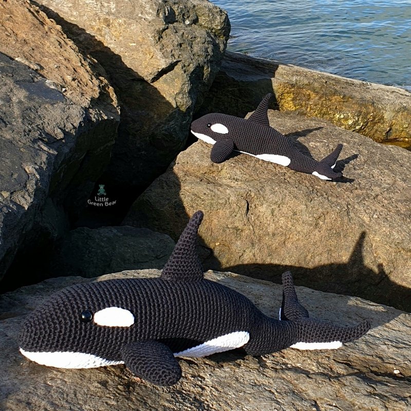 Olwyn the little orca spends her days cruising round with her large pod, saving her energy for hunting time. She’s always hungry and keeping an eye out for a tasty squid. She is 16 inches long (when made with the recommended materials).