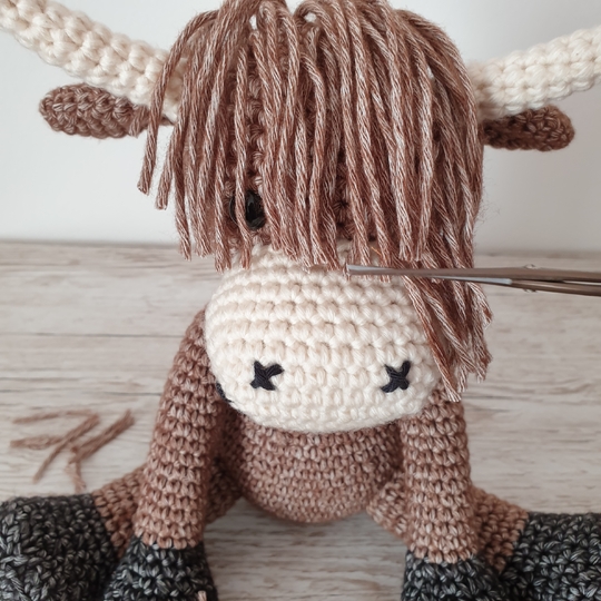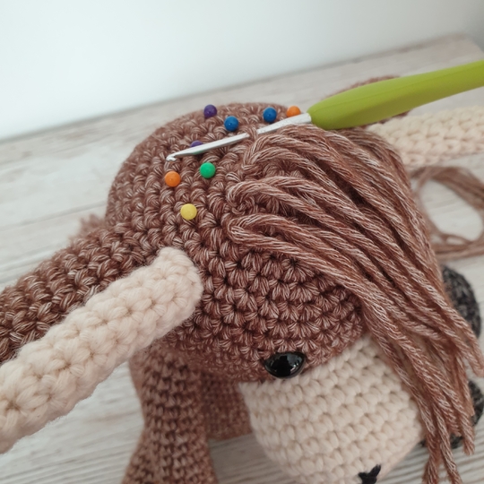 The 10 page pattern is intermediate skill level and is available in US terminology. It is clear to follow with detailed instructions and lots of pictures for step by step making and assembly. There are also picture instructions for colour change, back loop only, the tail and hair.