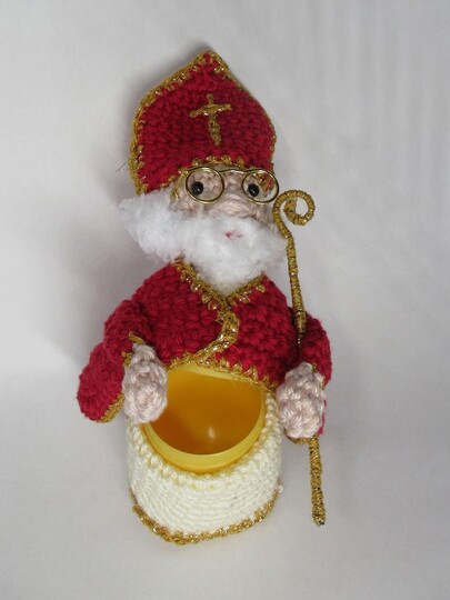 Die leeren Hüllen von Überraschungseiern kannst du noch wunderbar wiederverwerten, indem du sie umhäkelst. Dieser Nikolaus (der "Echte" - mit Bischofs- statt Zipfelmütze!) verbirgt in seinem Bauch eine kleine Weihnachtsüberraschung: eine Süßigkeit, ein kleines Schmuckstück, einen Glückwunsch, Geld oder einen Gutschein für eine gemeinsame Unternehmung.Bestimmt fällt dir auch etwas Passendes ein! Er kann auch zur Aufbewahrung von kleinen Gegenständen (Stecknadeln, Büroklammern etc.) verwendet werden.