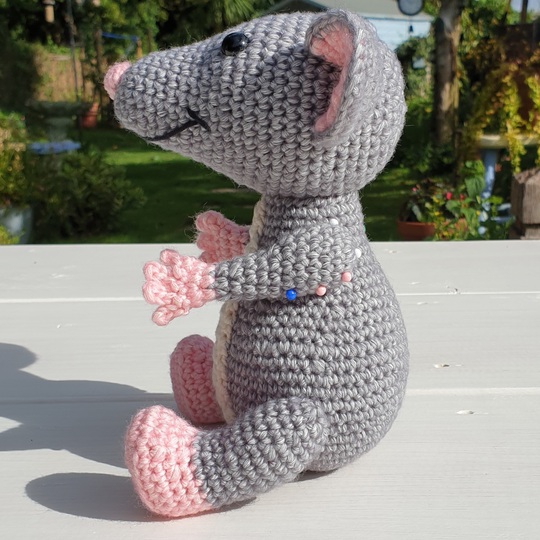 Roscoe, the little grey rat, spends all day sleeping and cleaning himself in his cosy underground home; just waiting for all the humans to go to bed so that he can find himself a midnight feast. He sits just under 8 inches tall (when made with the recommended materials).