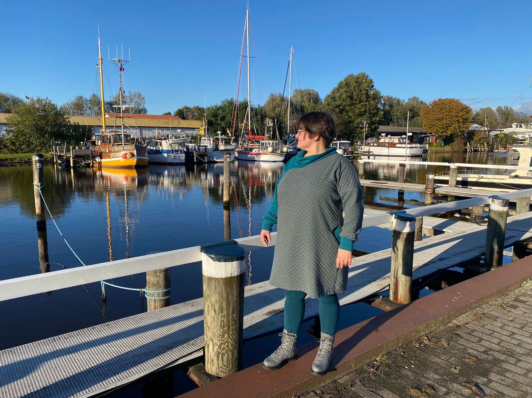 With the hem band, Alea becomes a hoodie or hoodie dress.