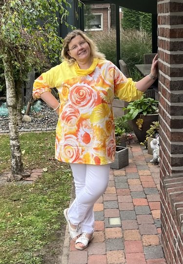 With Alea Curvy, you have an extremely versatile sewing pattern with an asymmetrical yoke and dropped shoulders, optionally with a gathered collar or hood.