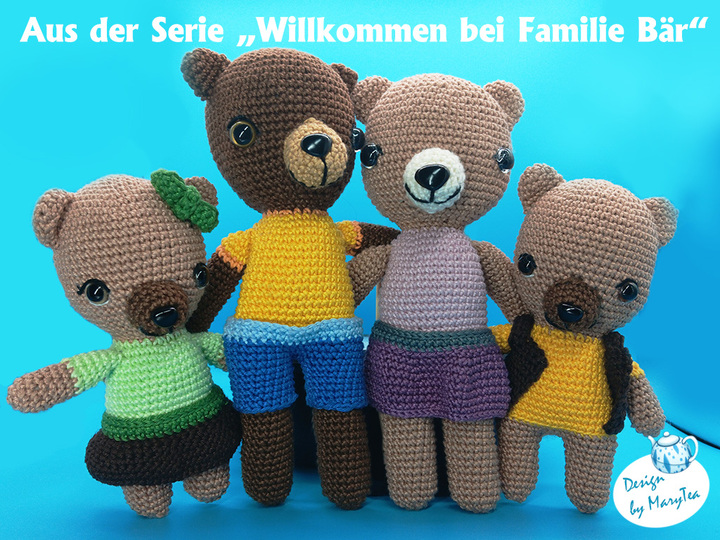 Willkommen bei Famiile Bär - darf ich vorstellen? Papa und Mama Bär freuen sich zusammen mit ihren Zwillingen Lotti und Bruno darauf, nachgehäkelt zu werden und im besten Falle Kinderaugen zum Strahlen zu bringen.