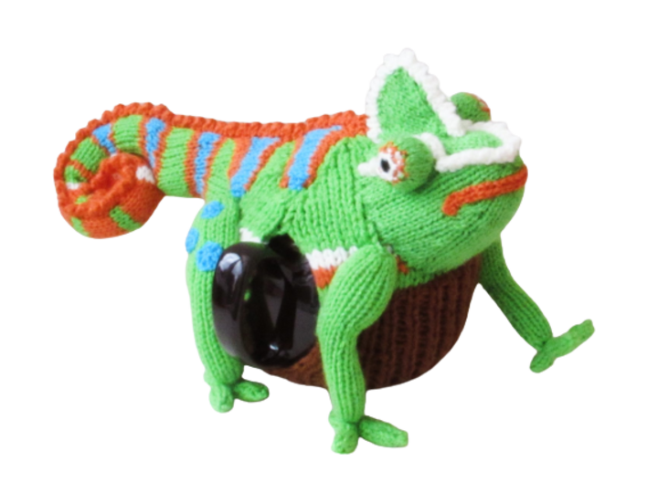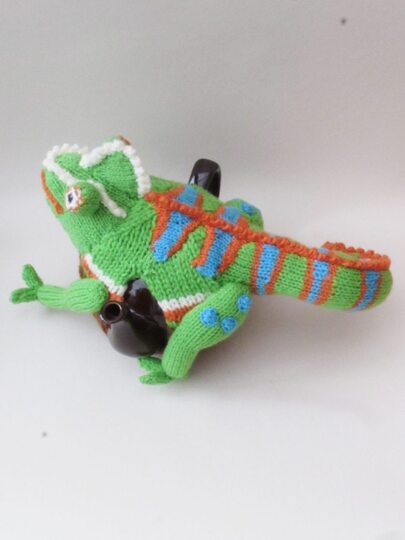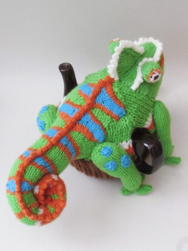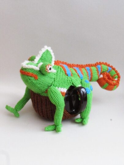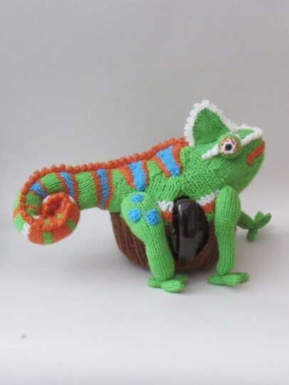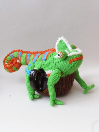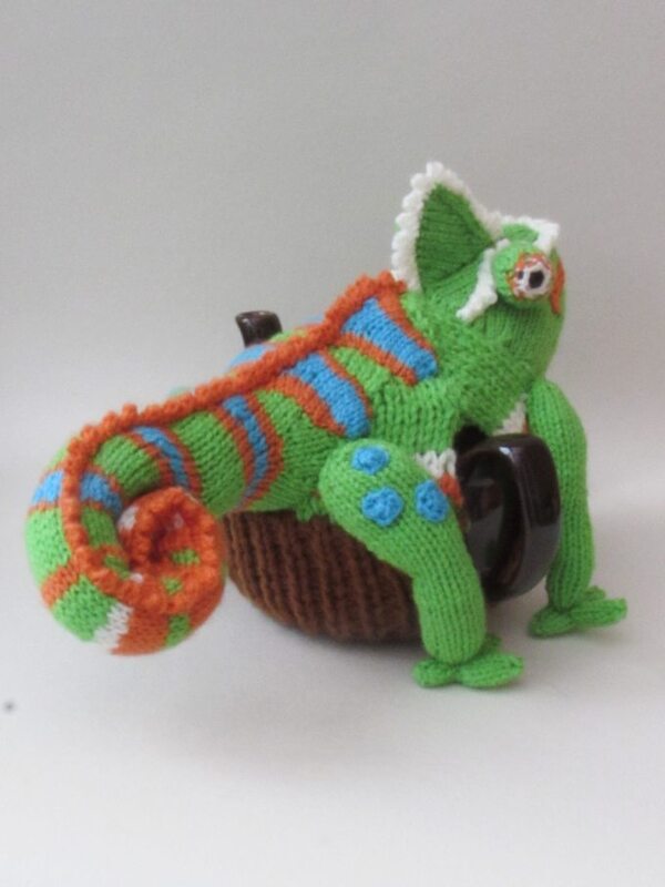 This product is the knitting pattern only to make your own chameleon tea cosy.