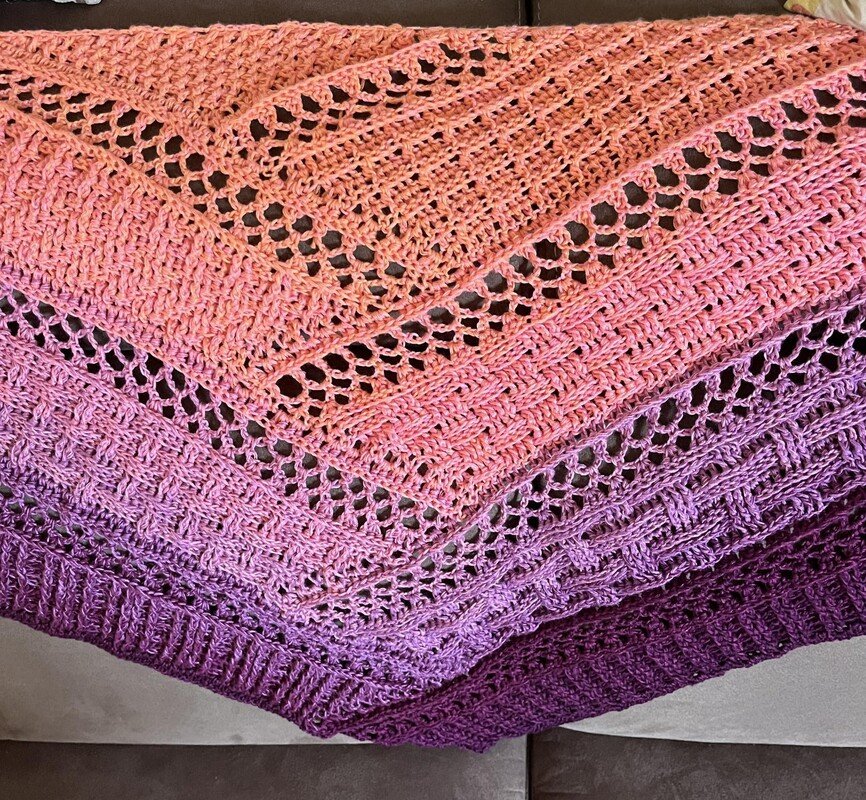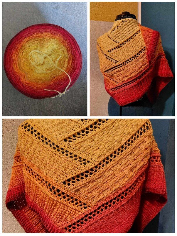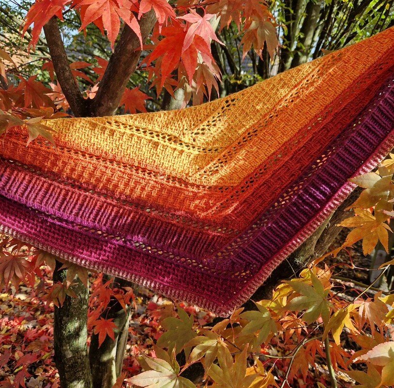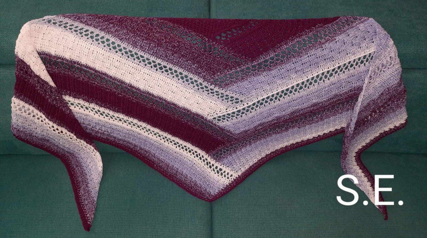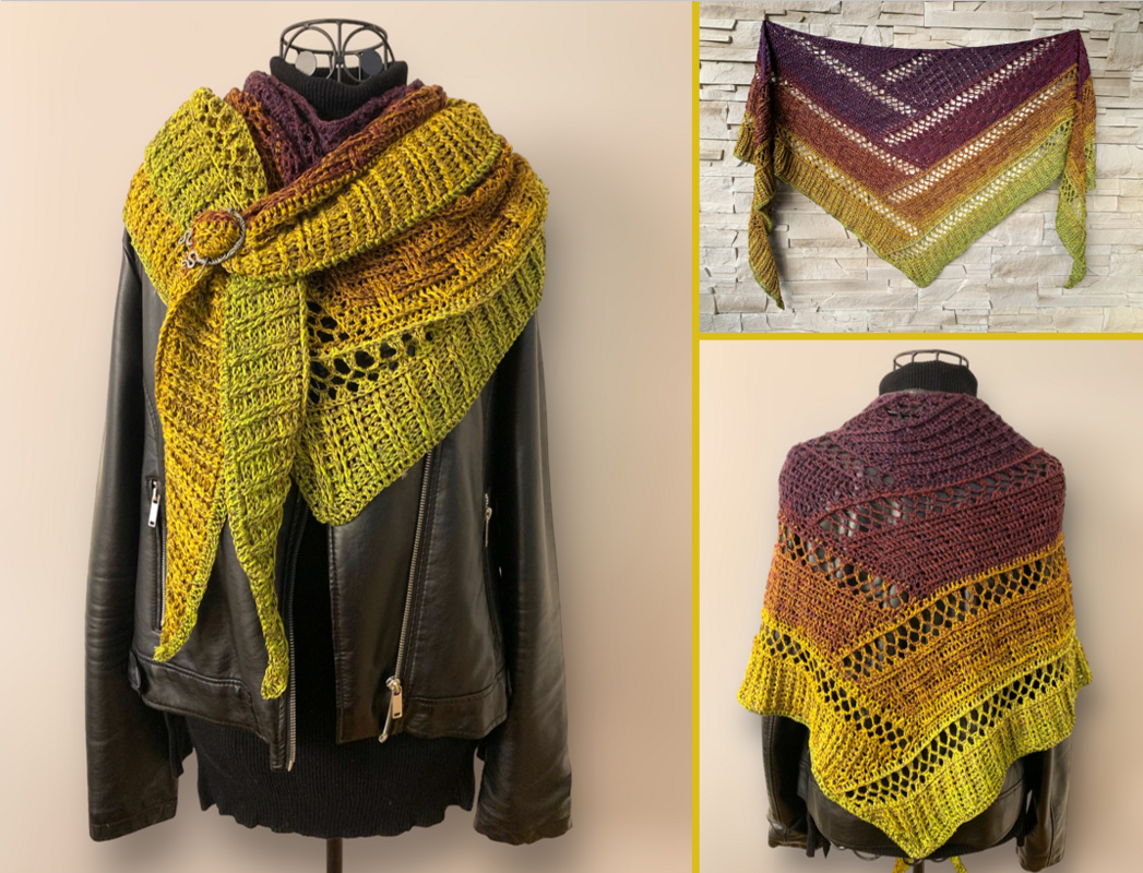 The triangular scarf Nemesis is the flat version of the scarf Akaste, it is also one of the special scarfs where you rotate your scarf regularly to have the beautiful patterns created. The scarf contains 10 different patterns, so you will not get bored while crocheting it.