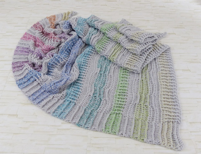 The result is a beautiful shawl with relief stitches that invites you to snuggle up. The shawl looks very elegant in a single color, but of course it can also be crocheted with color gradient yarn - everyone can crochet it however they like.