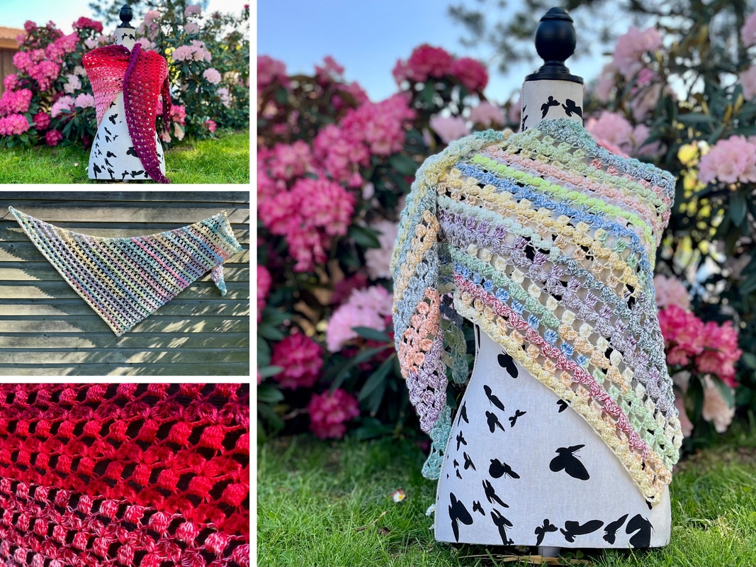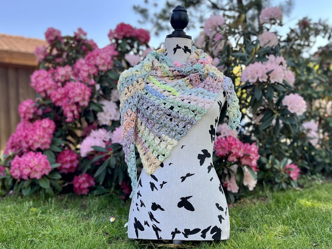 Häkeltuch Glücksveilchen - blumiges Dreieckstuch in zwei Varianten