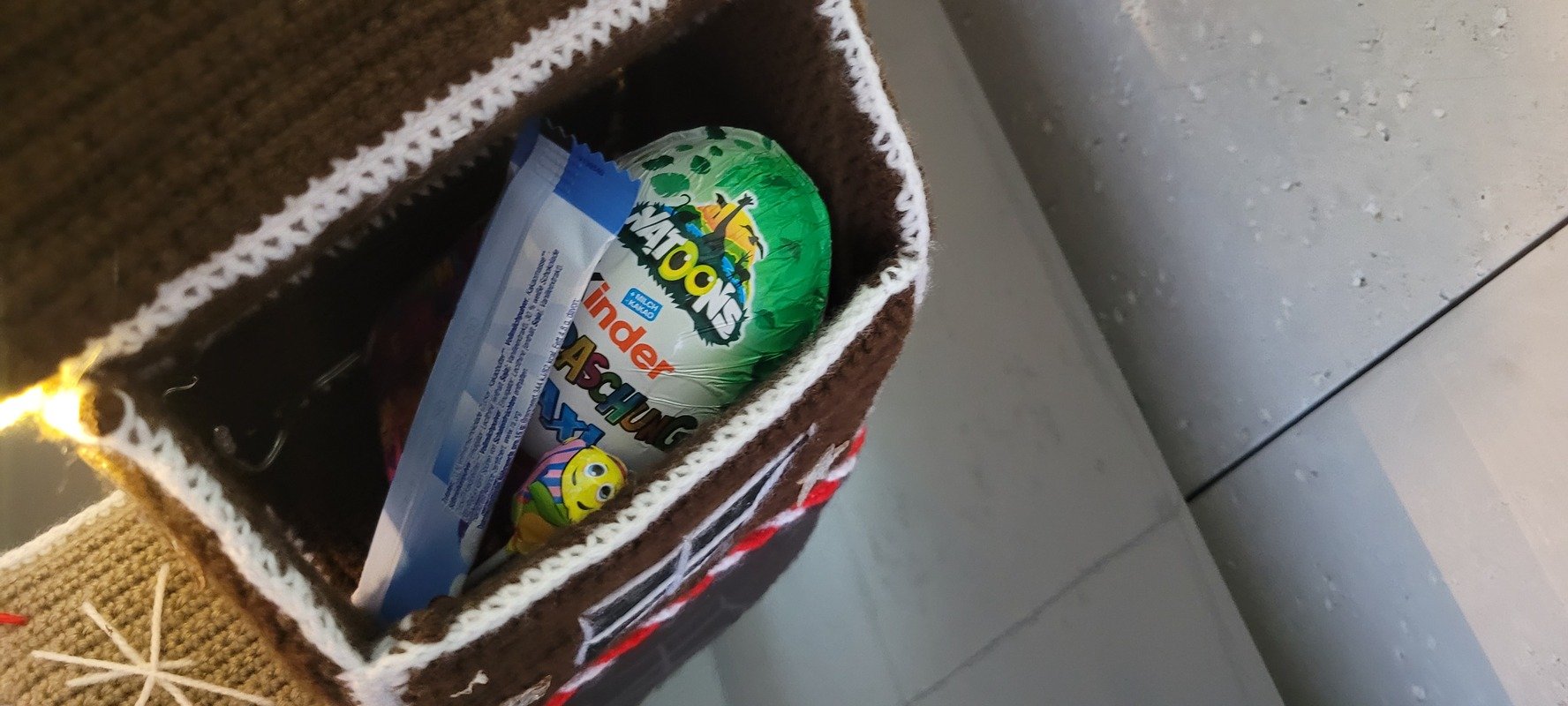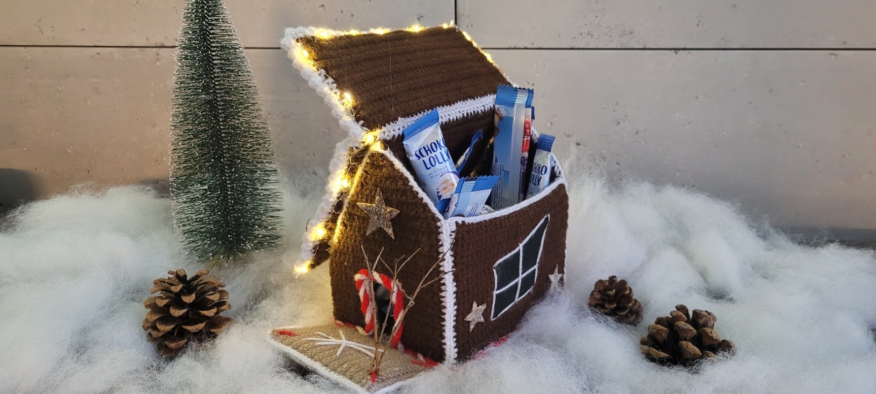 Das verrückte Lebkuchenhaus kann als Dekoration oder auch als Geschenkverpackung und Süßigkeitenbox verwendet werden.