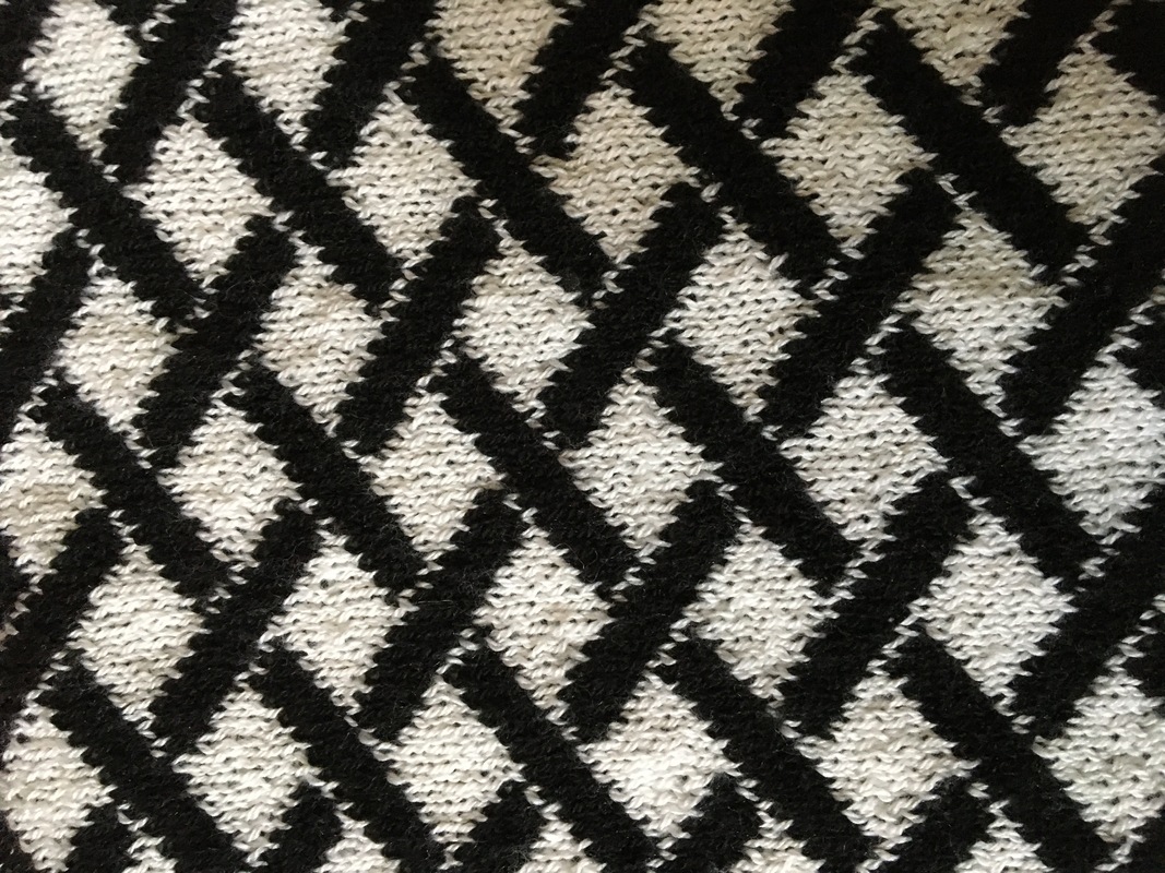 • Rico Design Luxury Lace (LL approx. 200m / 25g) 100g (= 4 balls) in white and 100g (= 4 balls) in black. My consumption was exactly 193g. Depending on your personal knitting style, the consumption may vary a bit. This scarf can of course also be knitted with another wool with a similar run length. Make sure that the selected wool does not scratch the neck. The same amount of wool is needed from both colours.