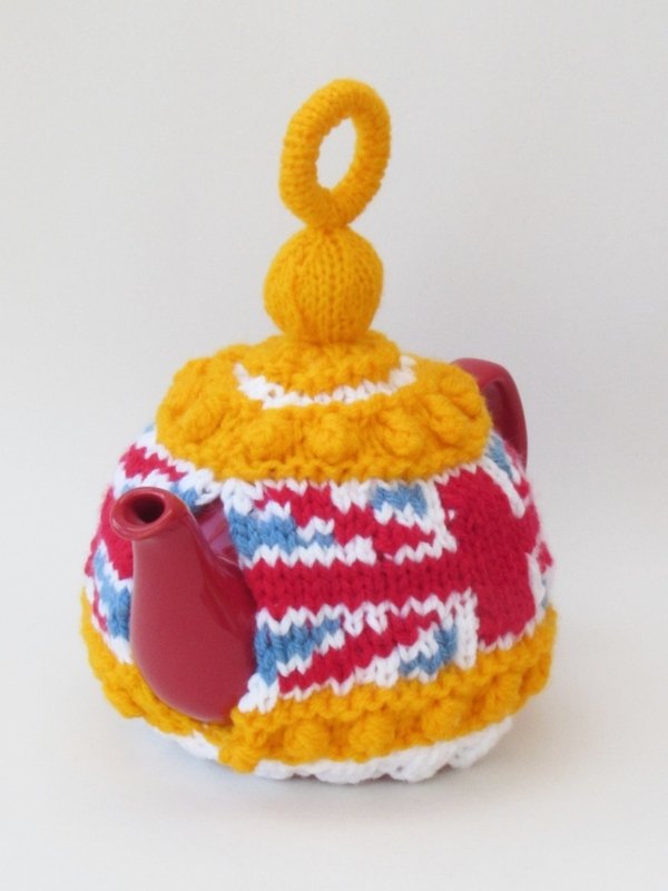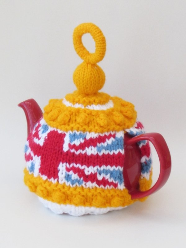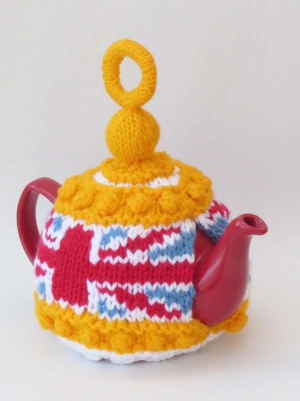 This product is the knitting pattern only to make your own Union Jack tea cosy.