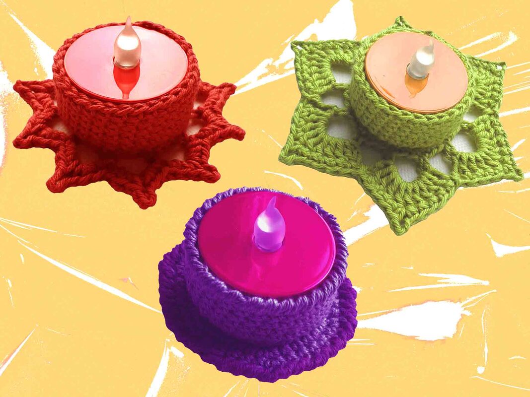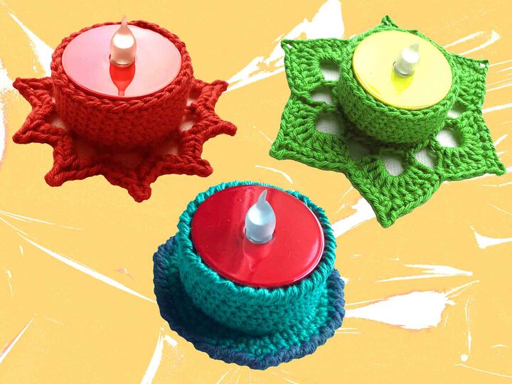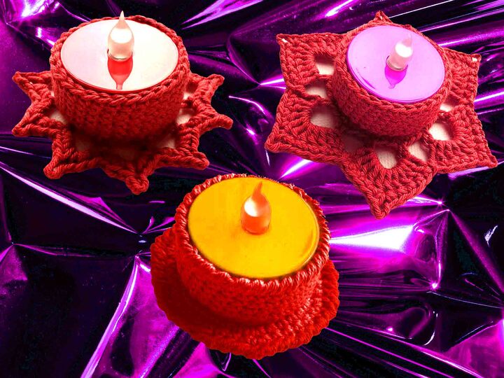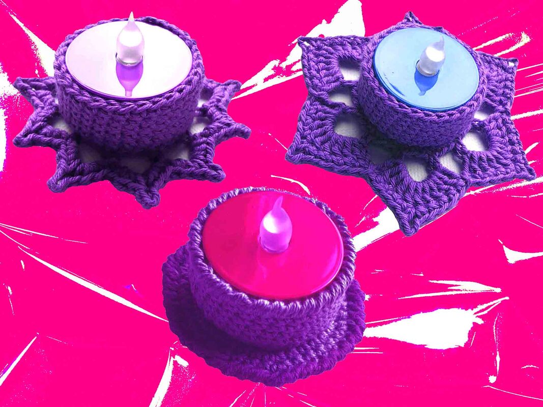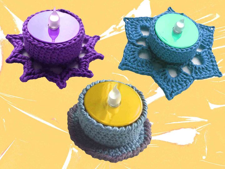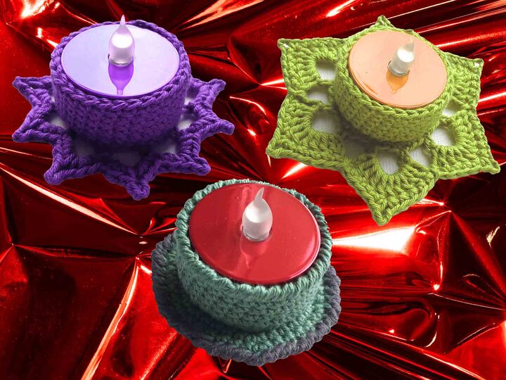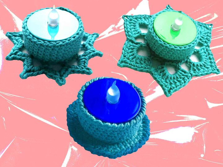 Mit dieser Anleitung zeige ich dir, wie du für LED Teelichter hübsche Teelichthalter häkeln kannst.