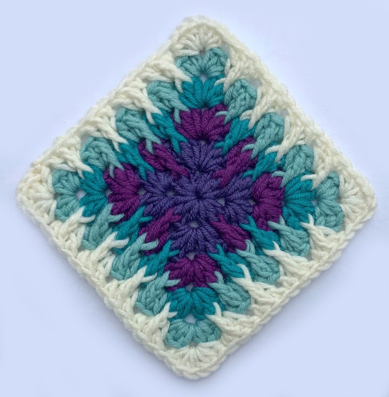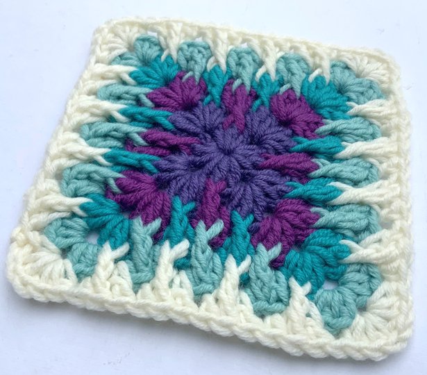 Das kleinere Granny MOSAIKVIERECK hat bei bei 6 RUNDEN