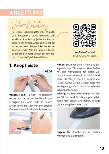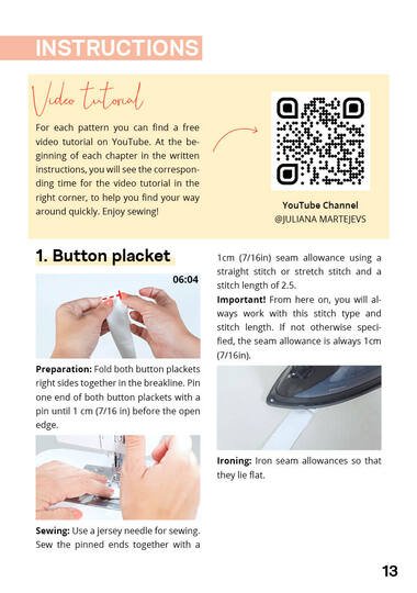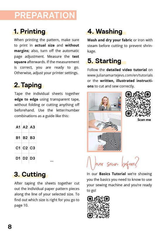 You can find the video instructions for the pattern on julianamartejevs. com under sewing instructions. If you have never sewn before, start by watching our sewing machine basics video tutorial. There you will learn about the components of a sewing machine and how to make your first seam.