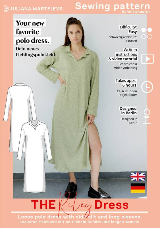 The pattern for a midi length polo dress. With written, illustrated sewing instructions and free video tutorial on our YouTube channel JULIANA MARTEJEVS - Das DIY-Modelabel or julianamartejevs. com