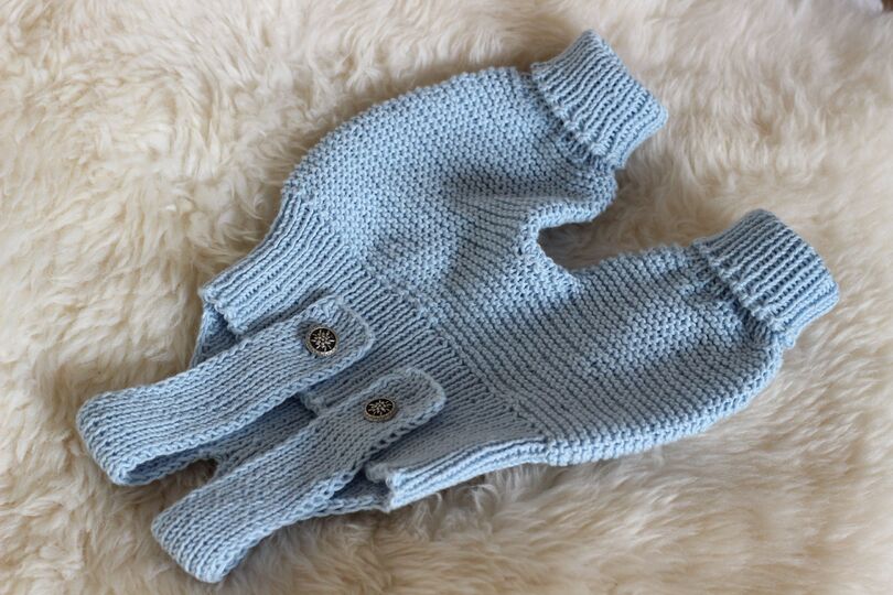 Knitting pattern for cute little baby romper to keep little body warm in style. Easy to slip on and off. Suits to preemies, tiny babies and also baby dolls 42-46 cm