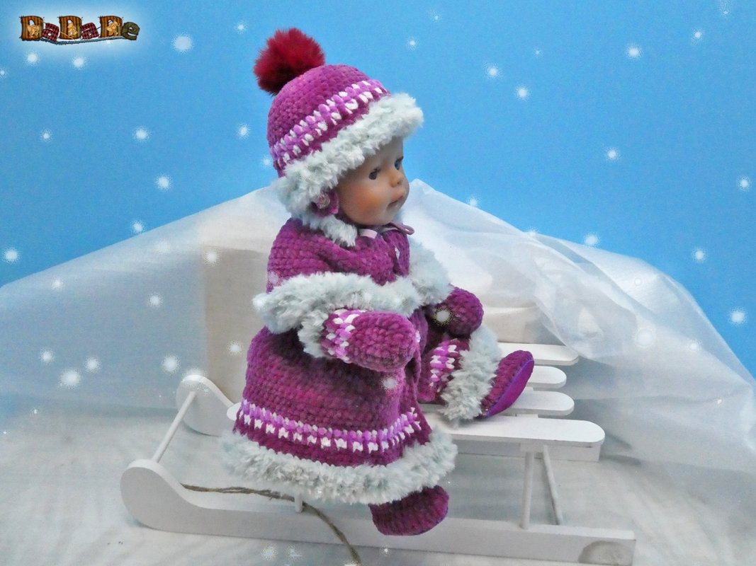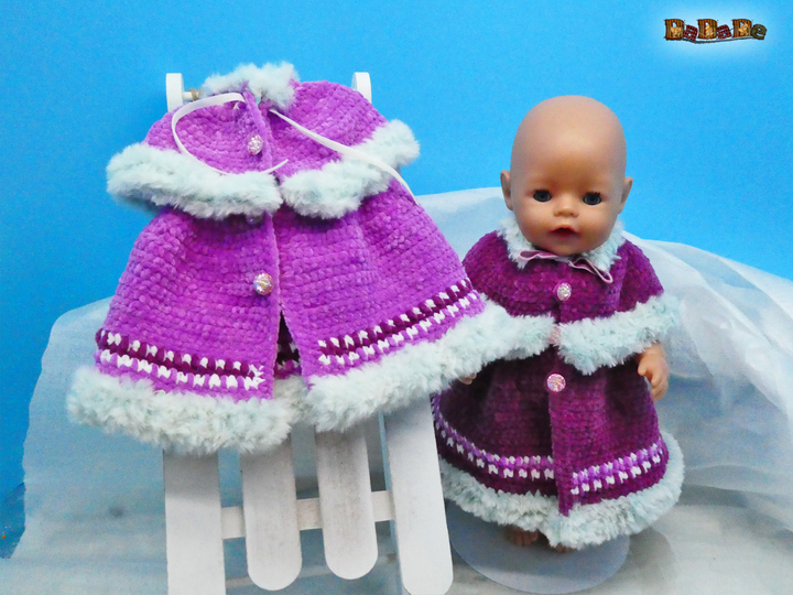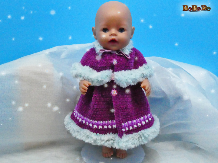 Der Mantel ist so gehäkelt, dass man ihn auch, mit etwas Erfahrung, an andere Puppengrößen anpassen kann.