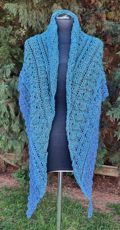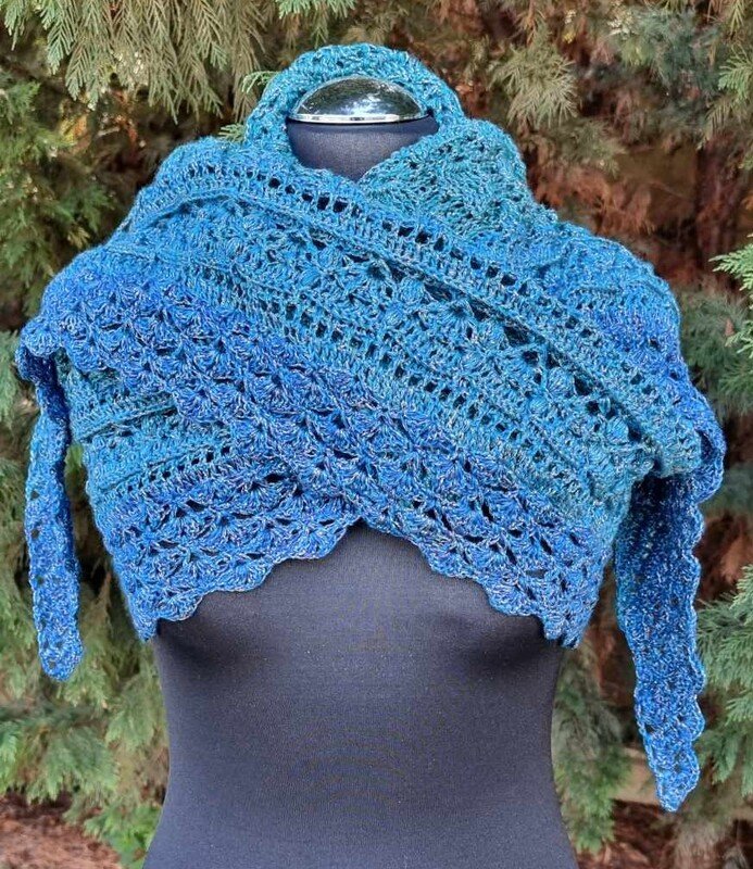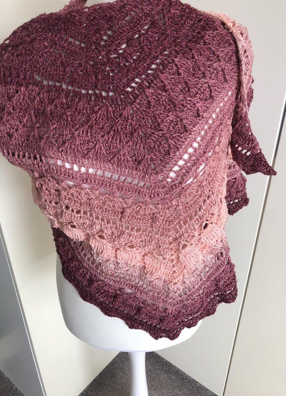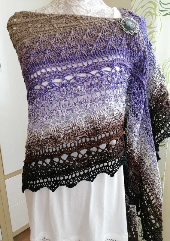 The flat triangular scarf "Admete" is a beautiful scarf with lots of front post and back post stitches. It is cosy and warm and therefore ideal for cold winter days. The different patterns make sure that you will not get bored during crocheting!
