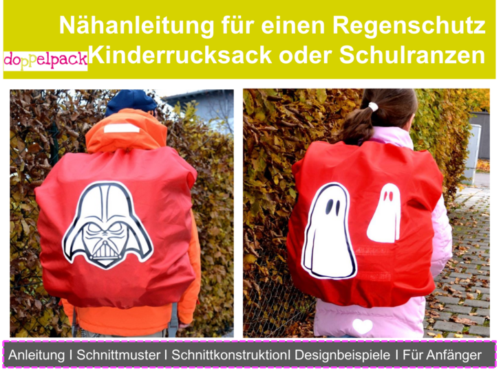 Mit Hilfe dieser Anleitung kannst Du einen Regenschutz eine Regenhülle für einen Kinderrucksack oder einen Schulranzen nähen.