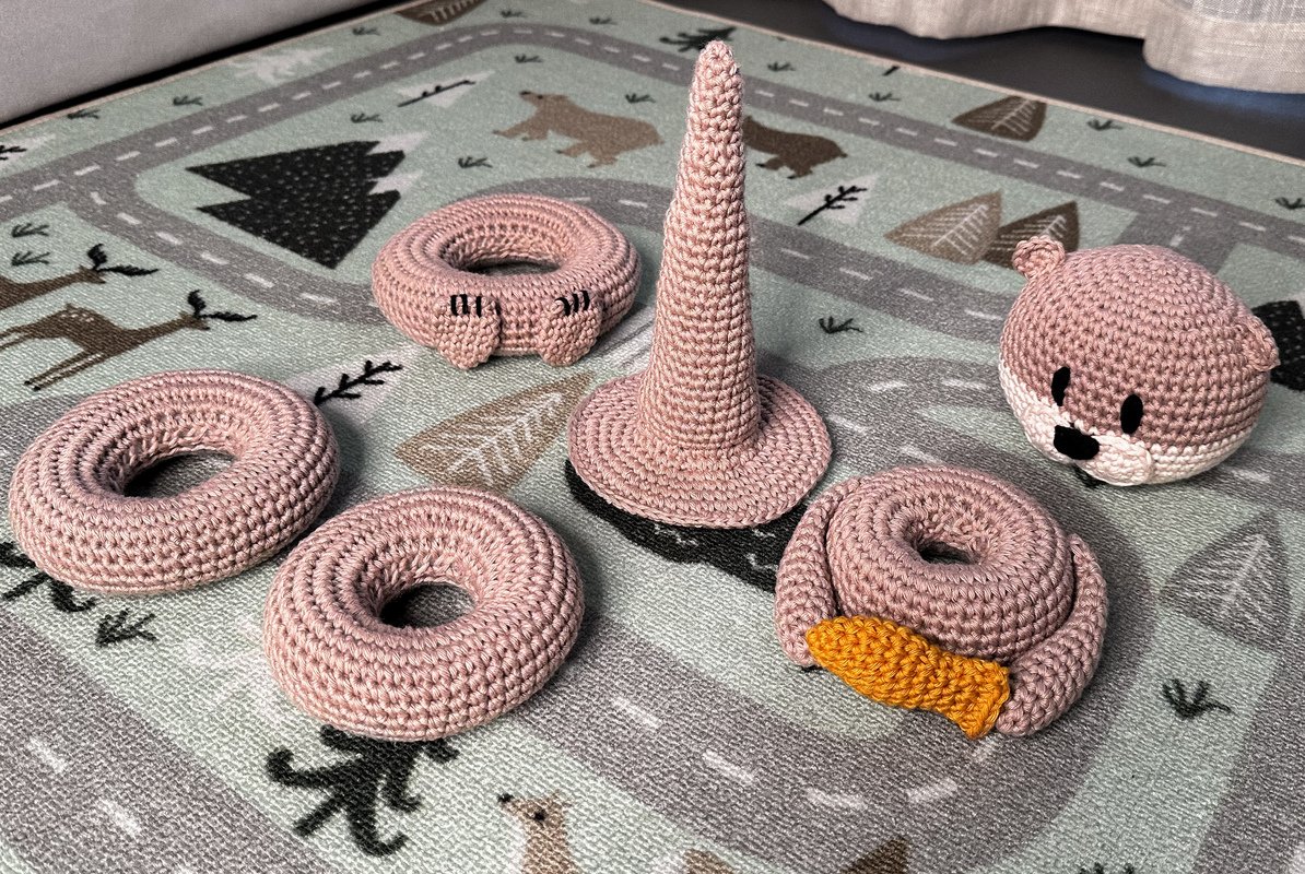 Easy-to-follow crochet instructions with pictures for an otter stacking toy that will make all children's eyes light up. Whether for your own little ones or as a gift, this music box is always an eye-catcher.