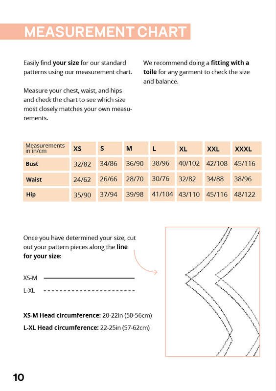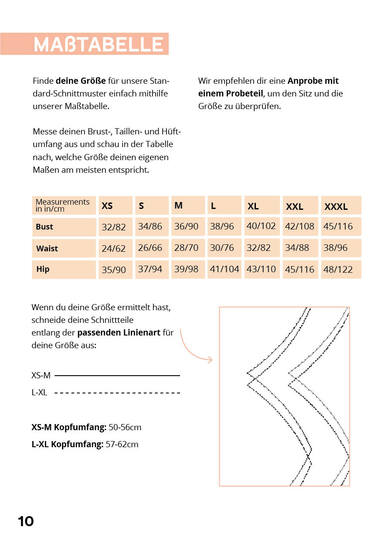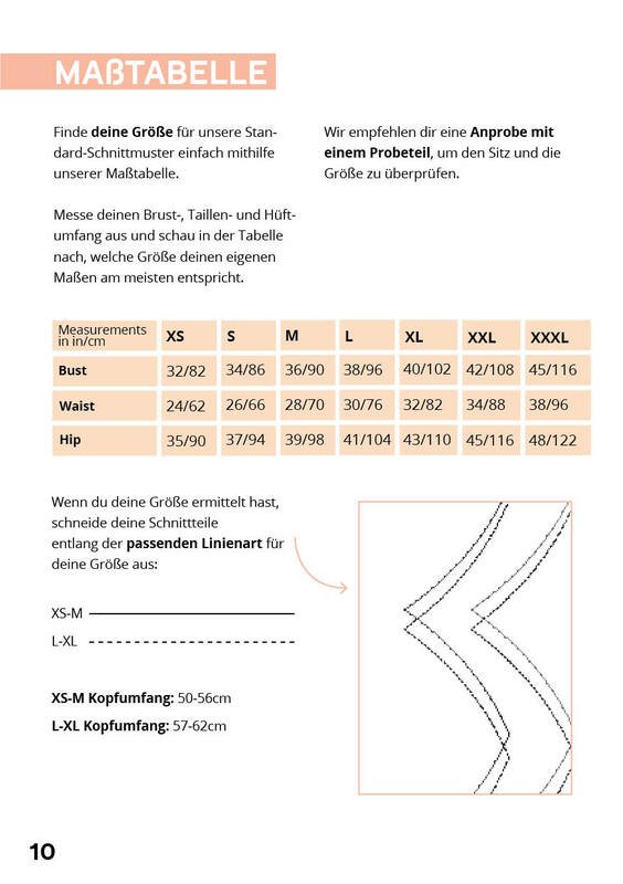 Sizes XS-XL are included in the pattern. The exact measurements of the sizes can be found in the size chart in the pictures. For reference: Our model Naomi is 170cm tall and wears size S. Our model Freia is 173cm tall and wears size XXL. Both wear the cap size XS-M.