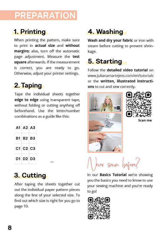 You can find the video instructions for the pattern on julianamartejevs. com under sewing instructions. If you have never sewn before, start by watching our sewing machine basics video tutorial. There you will learn about the components of a sewing machine and how to make your first seam.