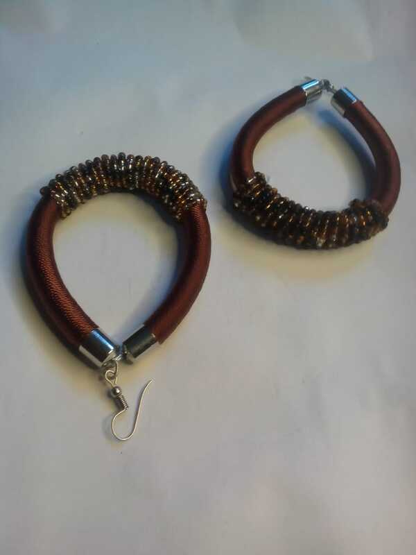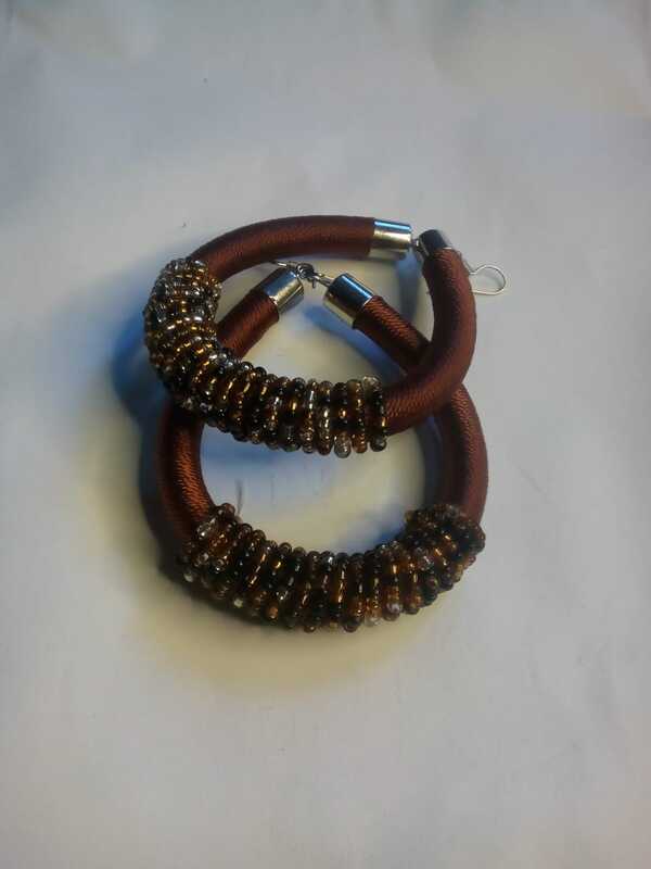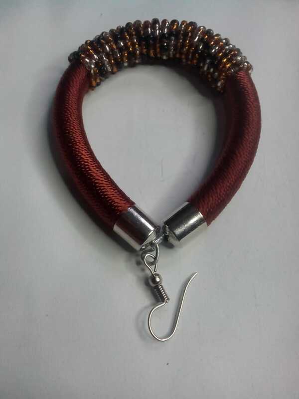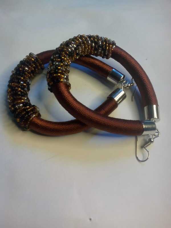 materials: brown fishing monofilament yarn, earring hook, 6 inch 2.4mm PVC pipe, 7.5 inches 0.8mm pure titanium wire, 2 silver end caps, 0.3mm fishing line assorted beads and titanium wire pliers for jewelry.