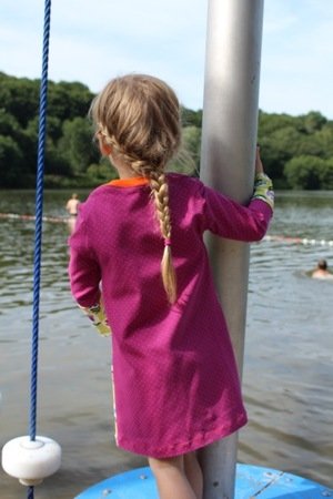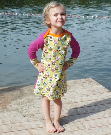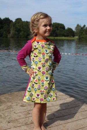 This pattern isn´t only sewn very quickly but you can also be very creative! We have already sewn this dress with an American neckline in several ways from different fabrics. Why don´t you combine several fabrics of the same series or use up some of your fabric wastes? This dress can be worn the entire year. Just add some tights when the days start to get colder. And if you simply need a shirt then just shorten the pattern….Two in one :-)