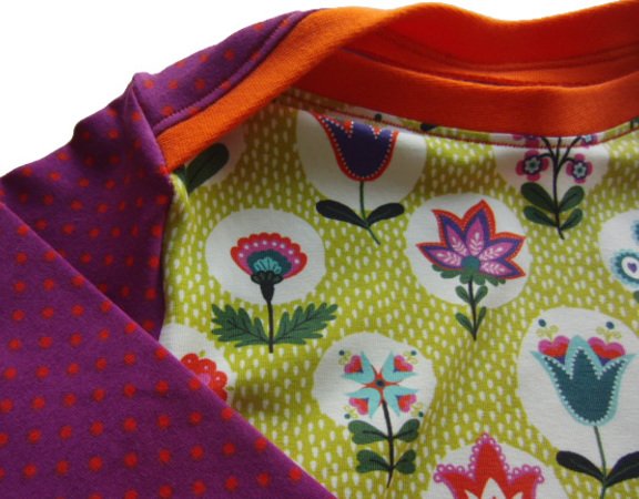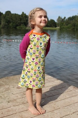 This pattern isn´t only sewn very quickly but you can also be very creative! We have already sewn this dress with an American neckline in several ways from different fabrics. Why don´t you combine several fabrics of the same series or use up some of your fabric wastes? This dress can be worn the entire year. Just add some tights when the days start to get colder. And if you simply need a shirt then just shorten the pattern….Two in one :-)