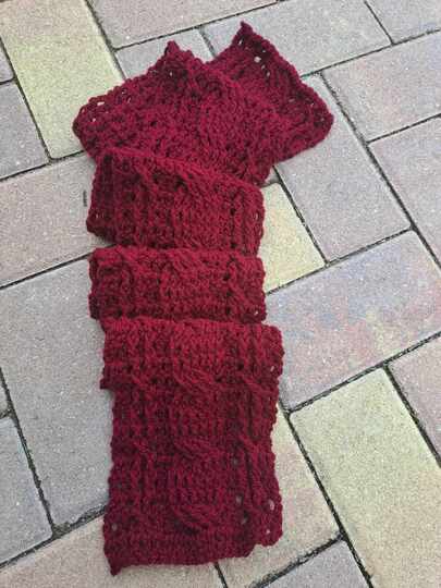 Dieser Schal kommt mit einem tollen Reliefmuster daher, das wie geflochtene Zöpfe aussieht und daher perfekt zu jedem kuschligen Winteroutfit passt.